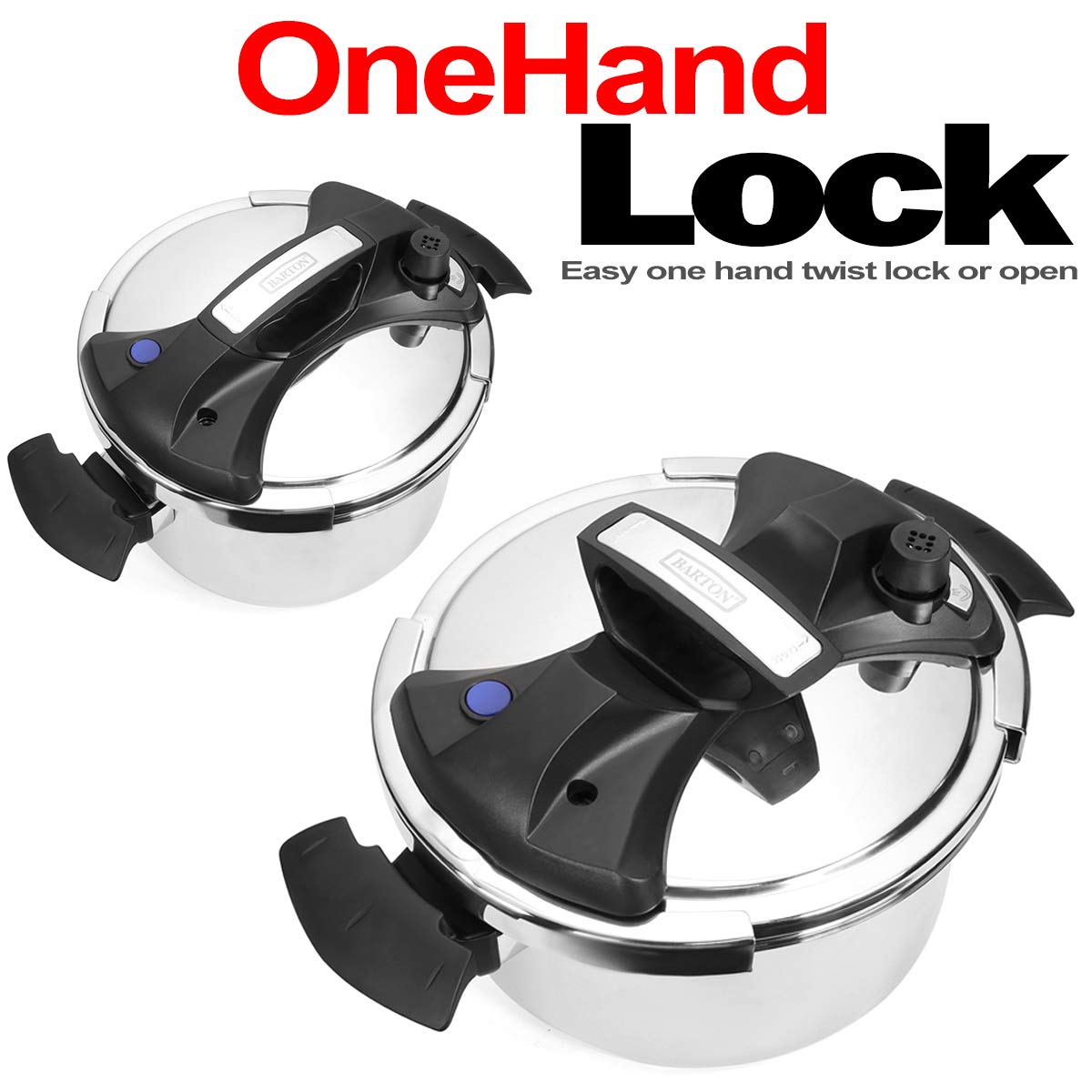- Our Pressure Cooker is equipped with the highest standard in safety systems that have been tested and approved in the US by laboratories. The turn-to -lock handle will securely lock the lid into place when closed; Dishwasher Safe - With the lid and gasket removed, the base can go in the dishwasher for hassle free cleanup