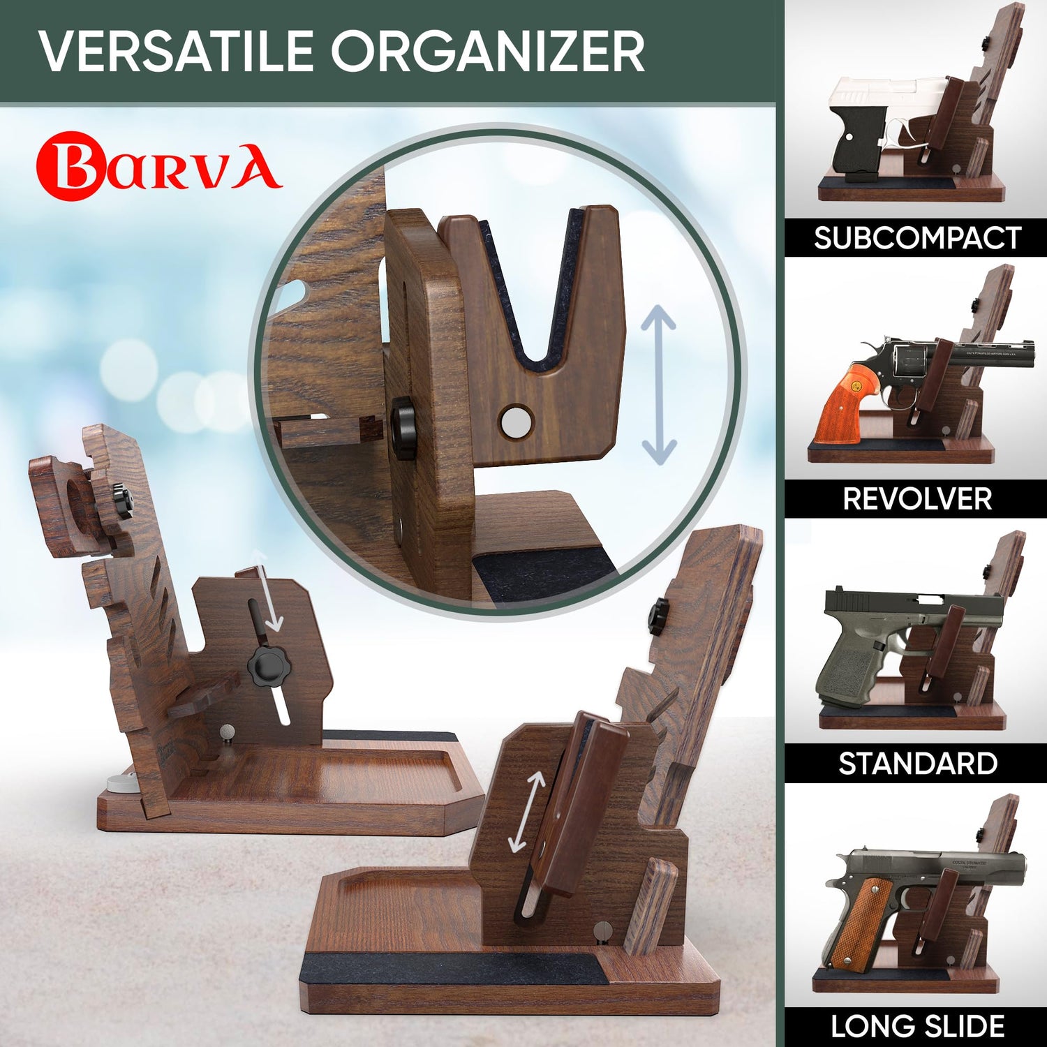 BarvA Phone Docking Station with Patented Adaptive Wood Gun Rack | Night Stand Smart Watch & Phone Stand | Charging Station Desk Organizer | Gun Accessories Storage and Organization