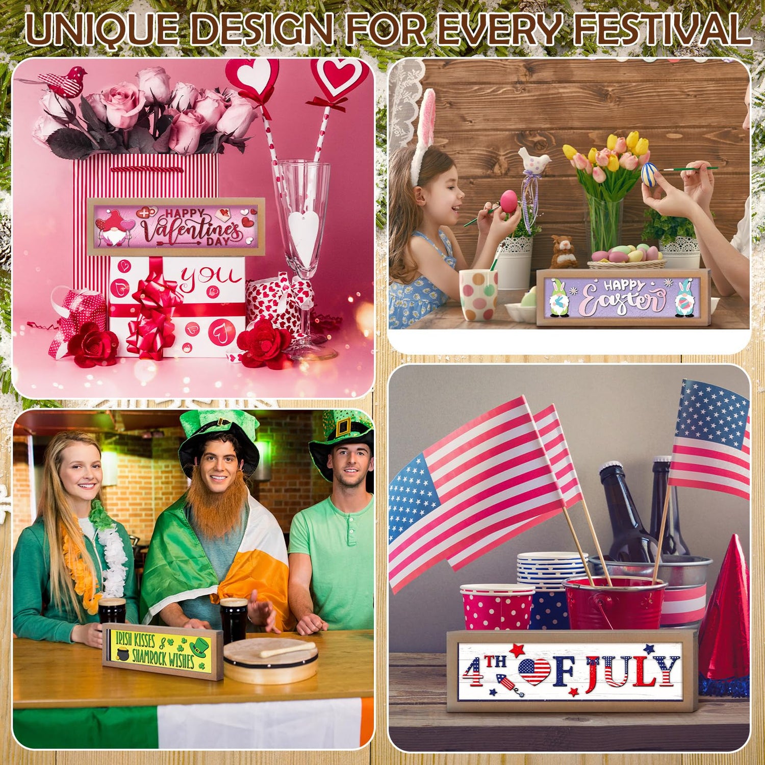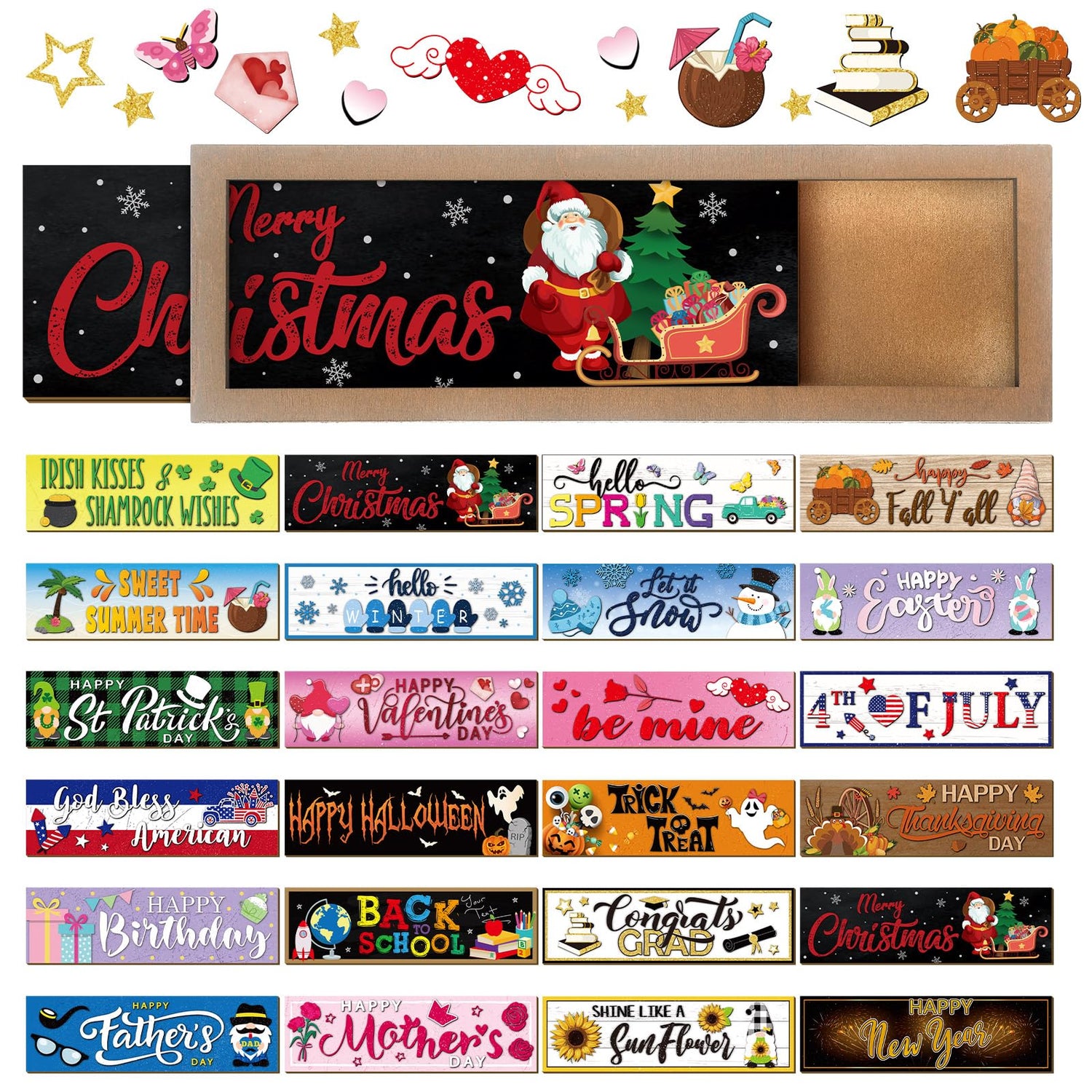 - Easy Assembly and Switch: the seasonal interchangeable signs are user oriented, making interchangeable home sign convenient to change the themes; Only three wooden cards stacked are needed to fit perfectly into the frame, and when it's time to switch, a gentle push will do the job