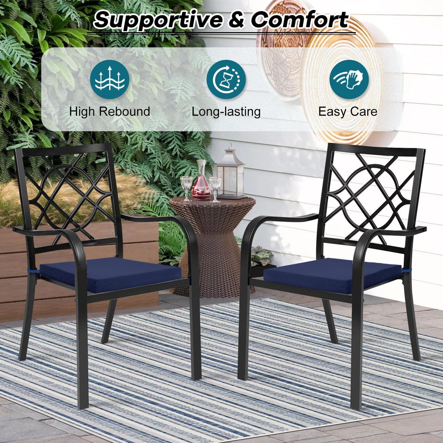 - STRAPS TO KEEP STABLE - There are 2 straps on each side of the outdoor furniture cushions to keep stable, you can easily fix the outdoor seat cushions in the appropriate position. Keep in place during frequent use, without being bothered by the cushion to move around and no more readjusting your outdoor patio cushions all the time.