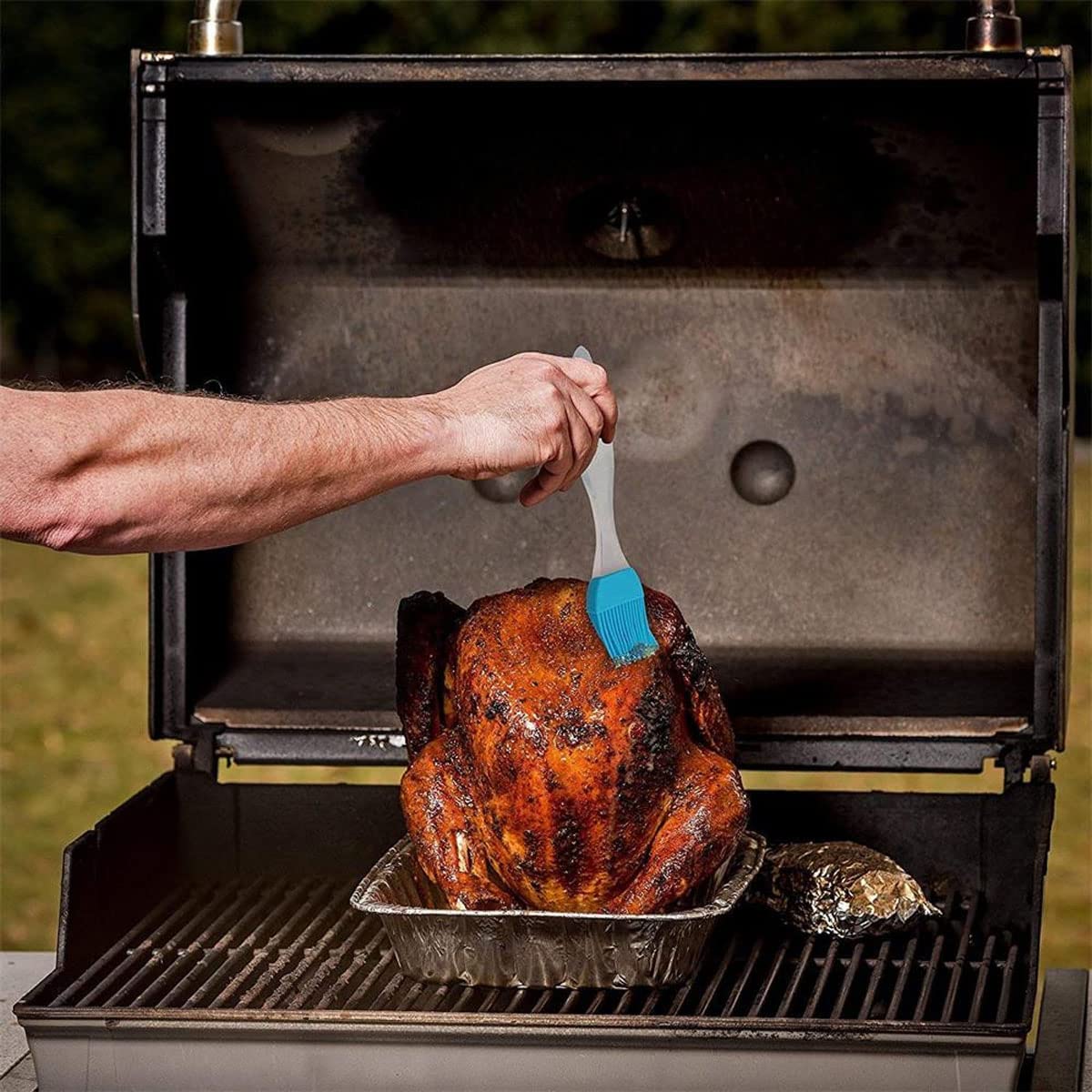 - This bbq Brush has 2 rows of silicone coated bristles, can hold a generous amount of liquid and spread your food more evenly.