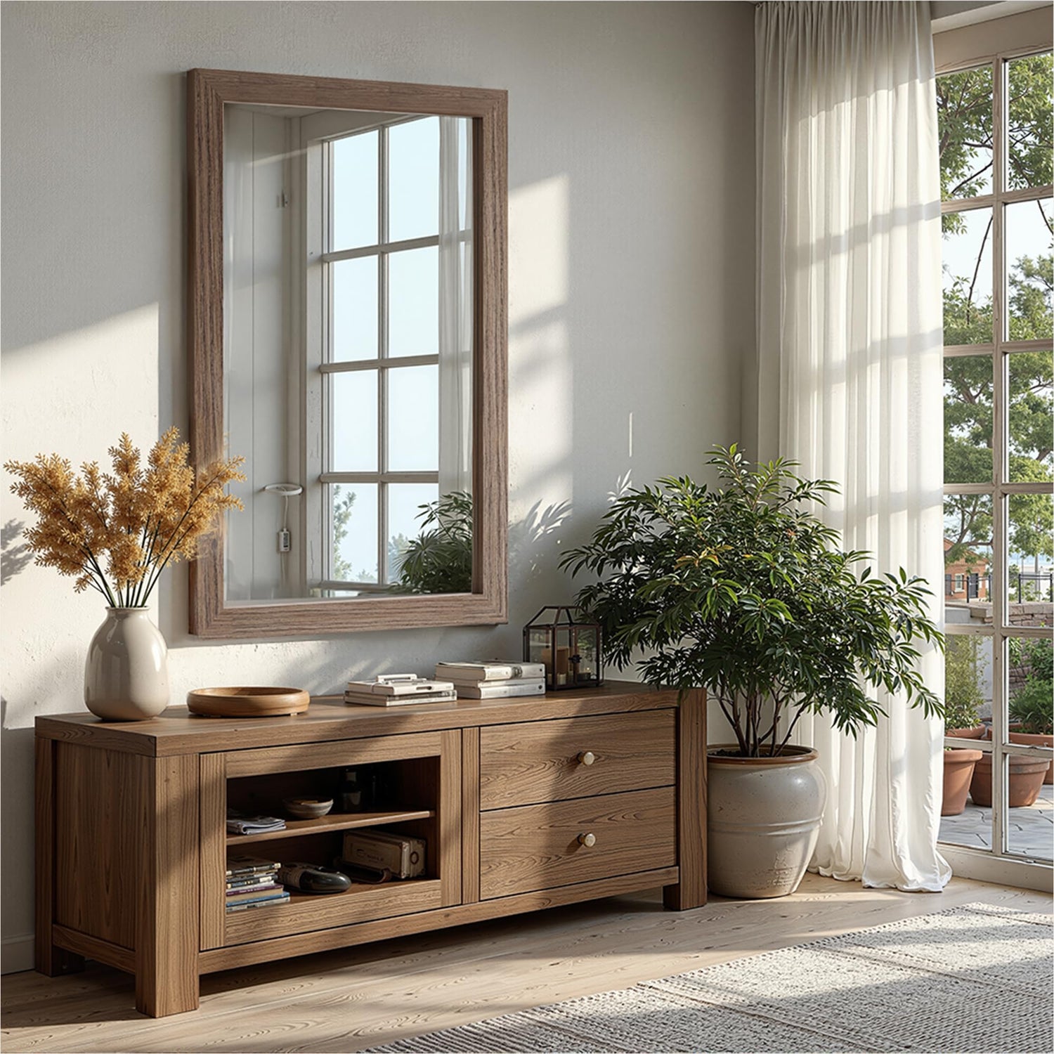- Rustic Farmhouse Design: The rectangular frame and rich wood finish create a rustic yet modern farmhouse look that complements various interior styles.
