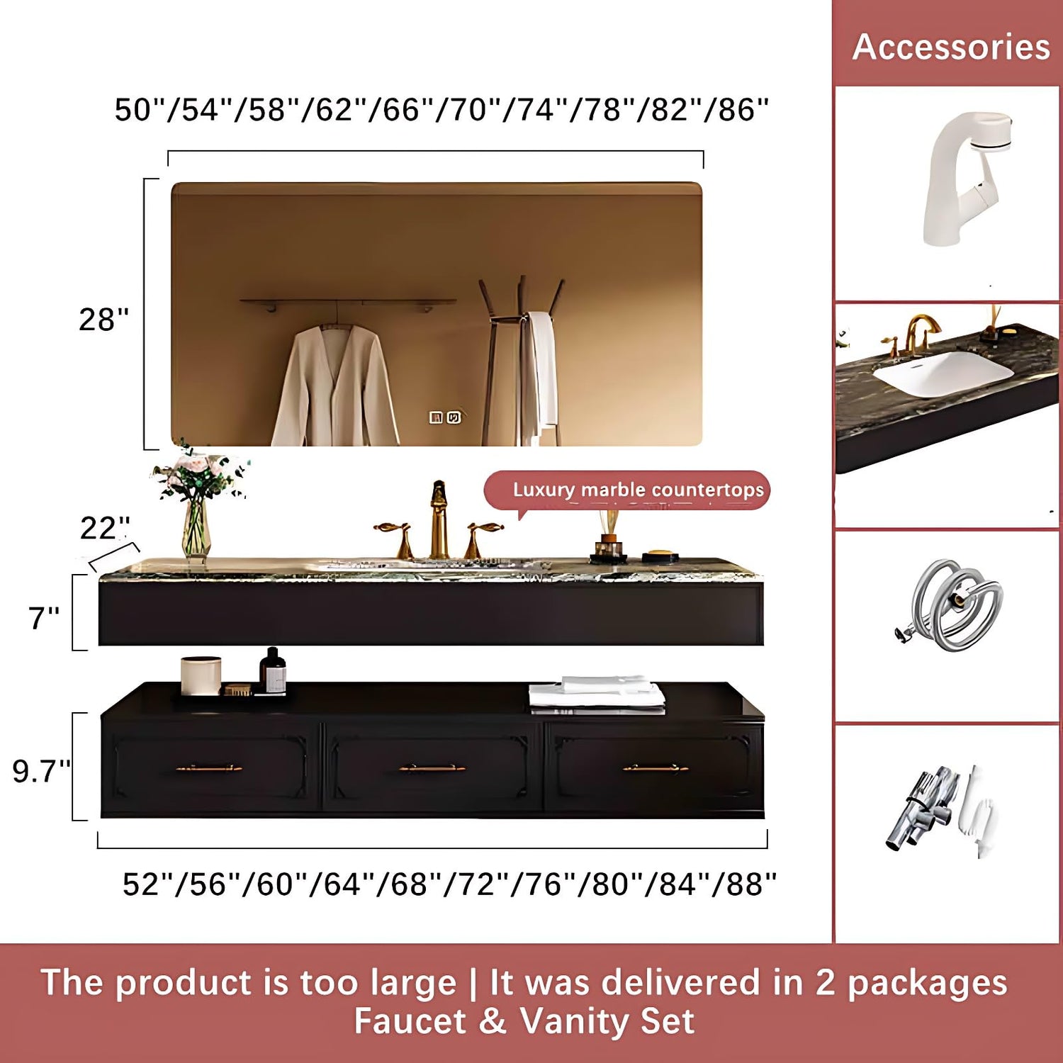 - Premium Water-Resistant Solid Wood Construction:Crafted from solid wood with a protective waterproof coating, this floating vanity bathroom is designed to withstand humidity and maintain its integrity over time, ensuring both beauty and functionality in your bathroom cabinet with sink combo.