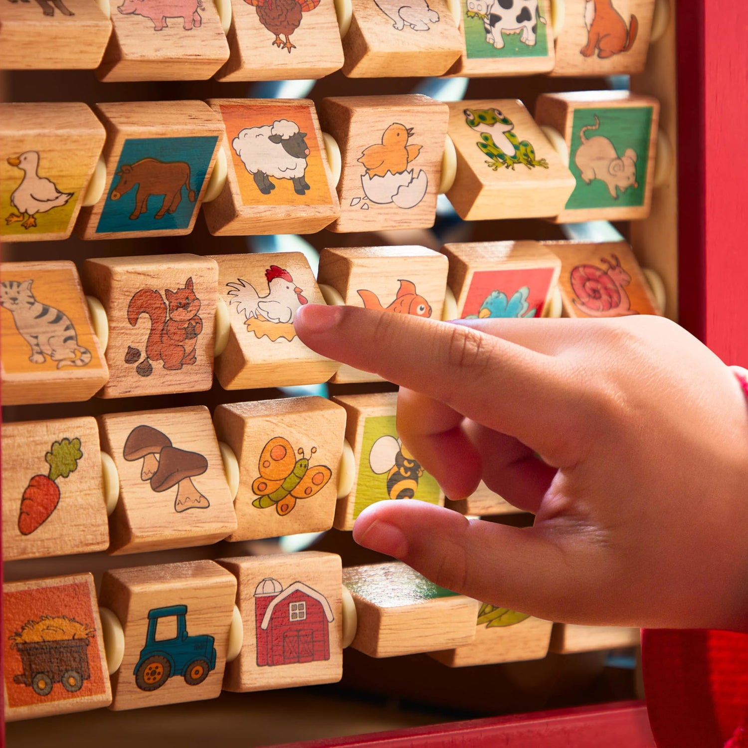 Details: This wooden toddler-and-baby activity center is a true childhood classic. The 5-sided cube offers zigzag race tracks, animal spinners, a mix-and-match animal puzzle, doors to open, and 1 farmyard with animal friends waiting to say hello. This wooden toy cube has so much to discover. Your toddler will be busy exploring and discovering for hours all while developing strong fine motor skills and increasing their natural curiosity.