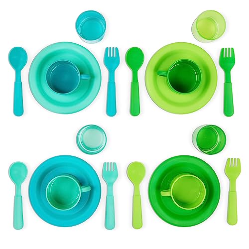- 26-Piece Set: This kitchen comes with an oven, stovetop, sink, dish rack, a chalkboard, storage, dishtowel hanger, cookware, dishes, cutlery, and utensils.