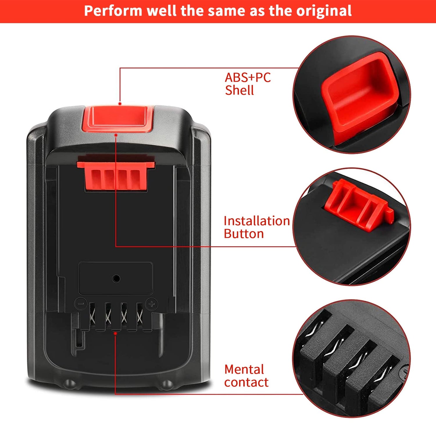 - 【Perfect Compatibility】Replacement for Black and Decker 20v lithium Battery LB2X4020 LBXR20 LB2X4020-OPE LB20 LBX20 LBXR2020-OPE LBXR20B-2 LB2X4020 LST220 batteries; Compatible with all Black&Decker 20 volt cordless power tools