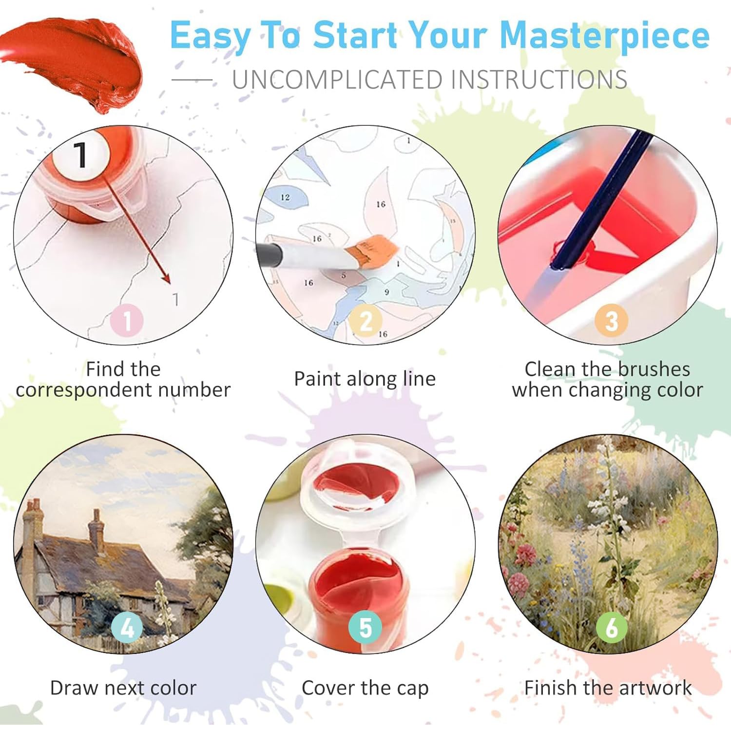 - Complete Tool Kit - DIY style paint by numbers has a complete tool kit, matched paint and HD canvas. Open the package and you can start painting immediately