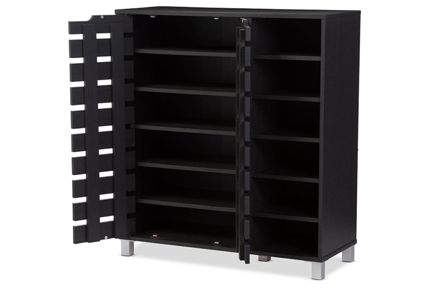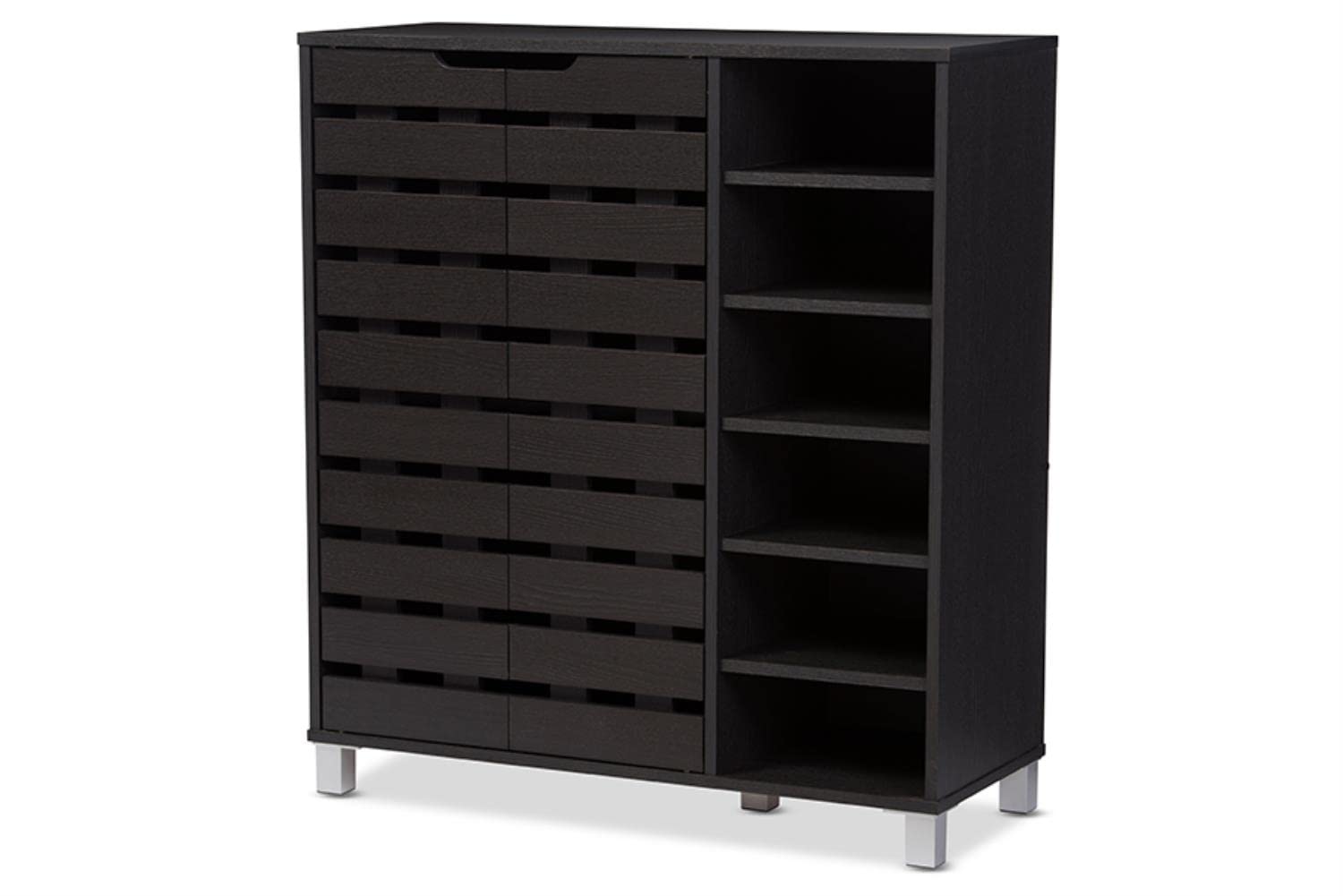 Baxton Studio Shirley Modern & Contemporary Wood 2-Door Shoe Cabinet with Open Shelves, Dark Brown