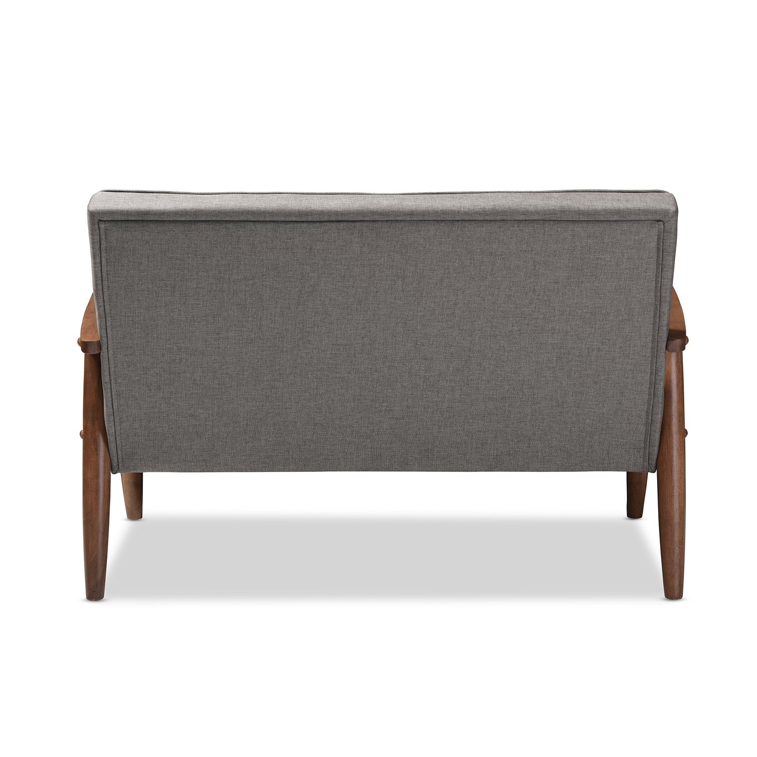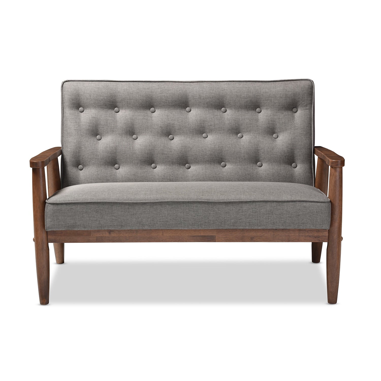 Baxton Studio Sorrento Mid-Century Retro Modern Grey Fabric Upholstered Wooden 2-Seater Loveseat