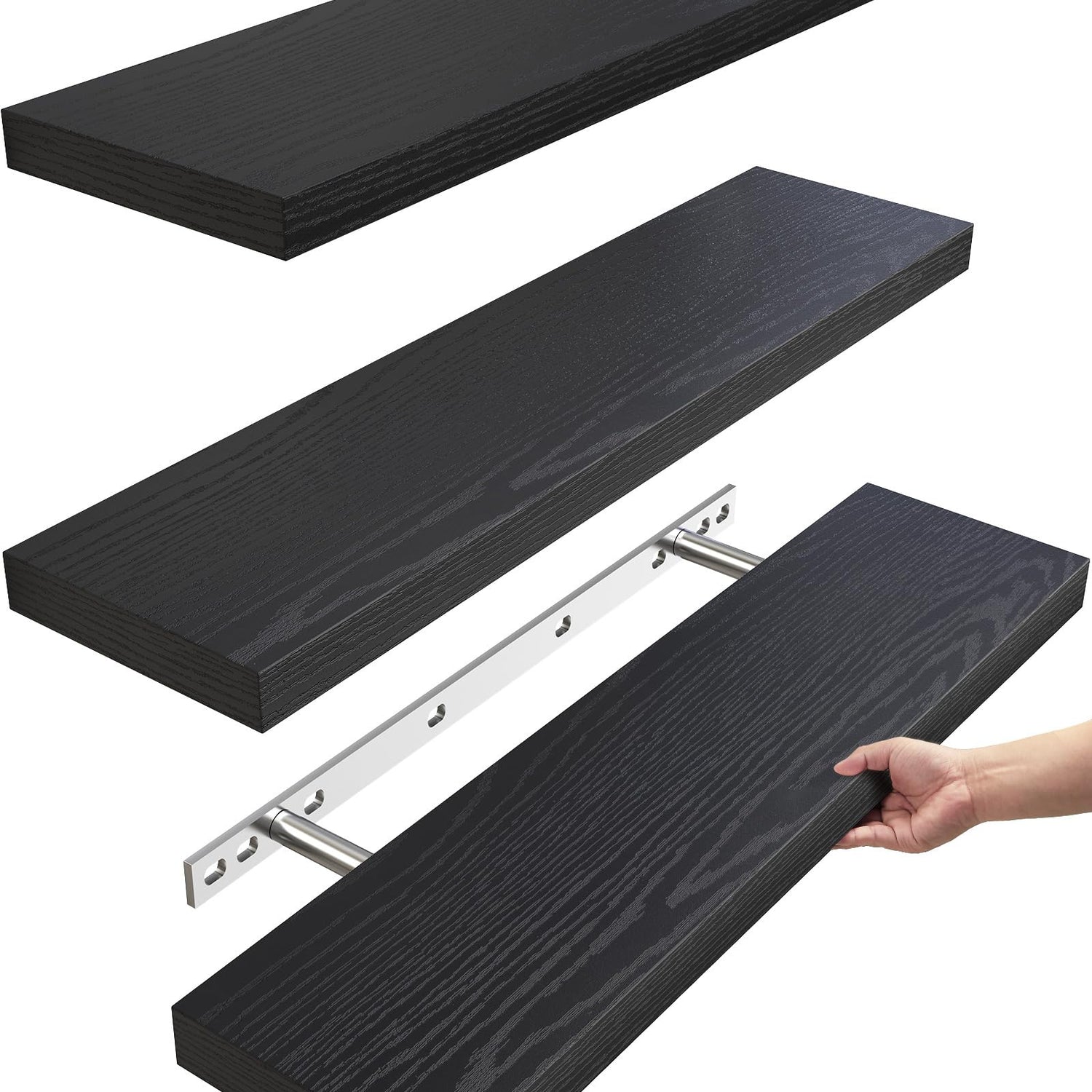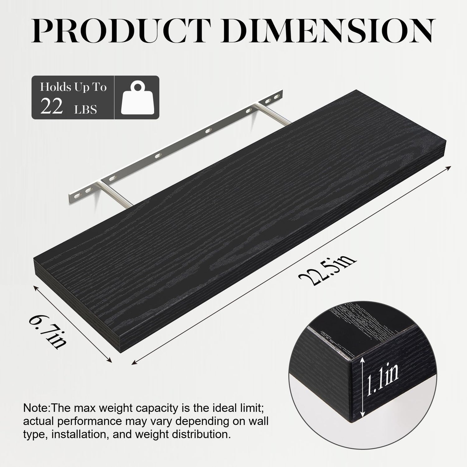 BAYKA Floating Shelves for Wall, 22.5 inches Wall Mounted Rustic Wood Shelves for Bathroom, Bedroom, Living Room, Floating Shelves for Books/Storage/Decor with 22lbs Capacity(Black,Set of 3)