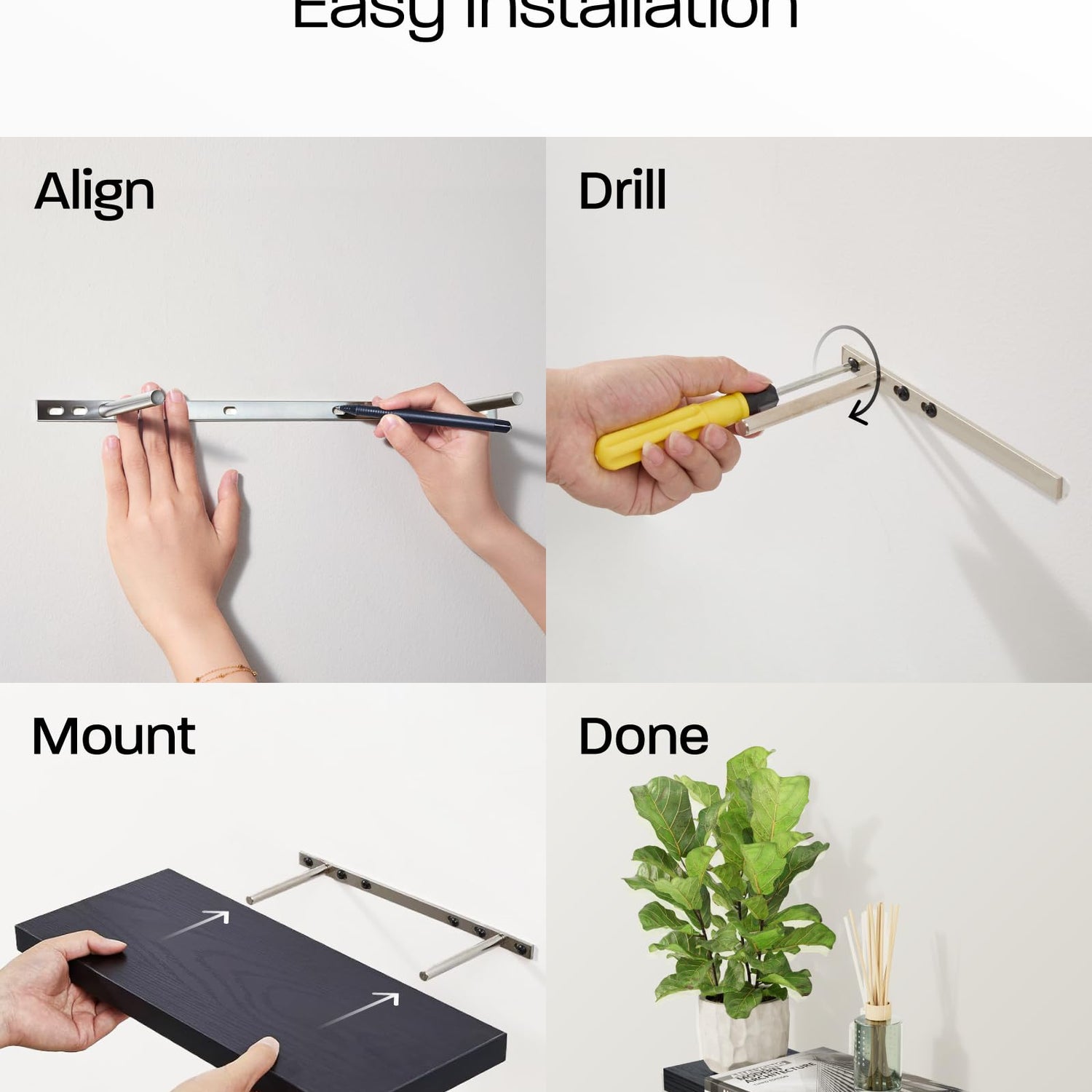 - Increased Load-Bearing - Our shelves can hold up to 22 lbs, allowing you to display your favorite objects with confidence