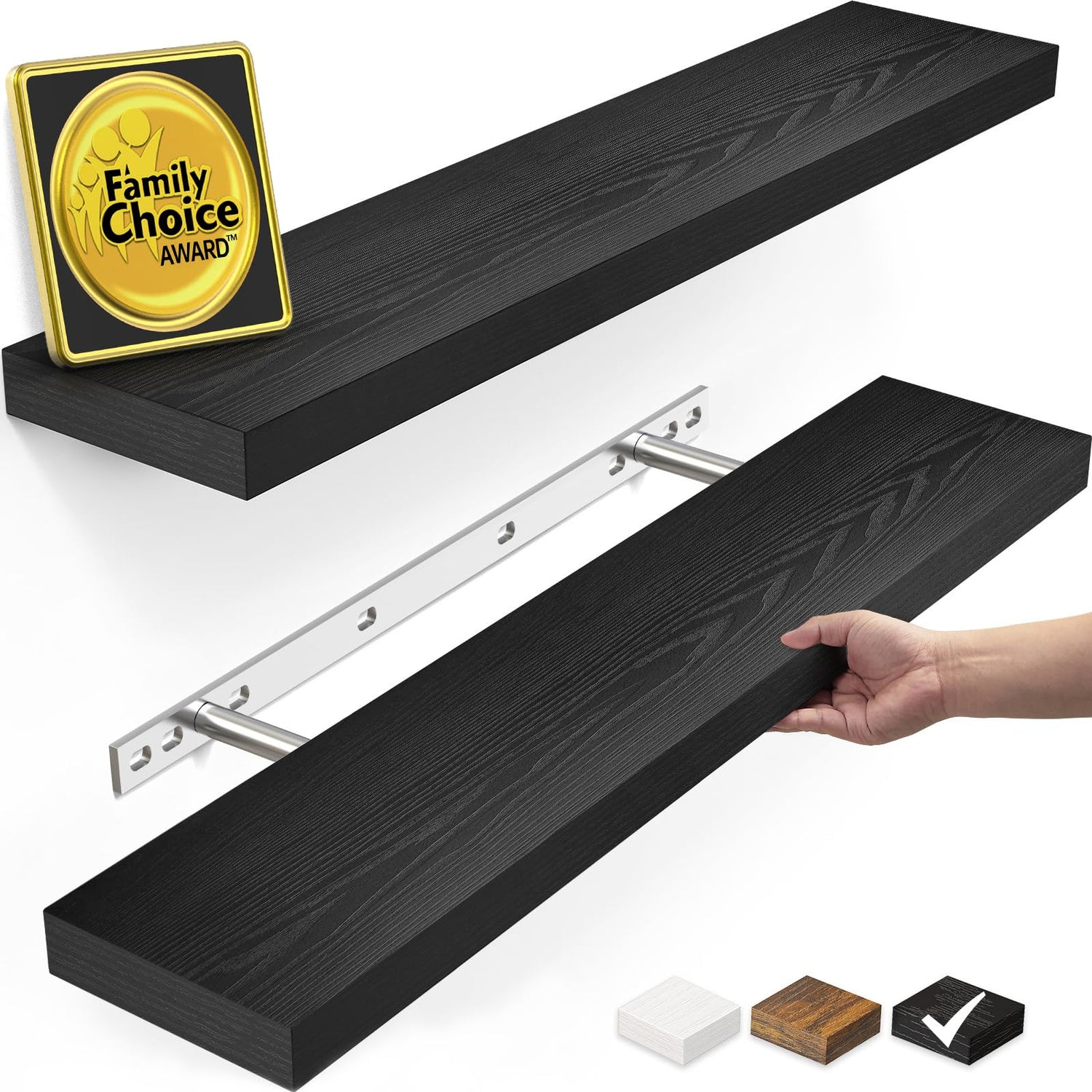 BAYKA Floating Shelves for Wall, 22.5" Wall Mounted Rustic Wood Shelves for Bathroom, Bedroom, Living Room, Kitchen, Office, Hanging Shelf for Books/Storage/Room Decor Capacity (Black, Set of 2)