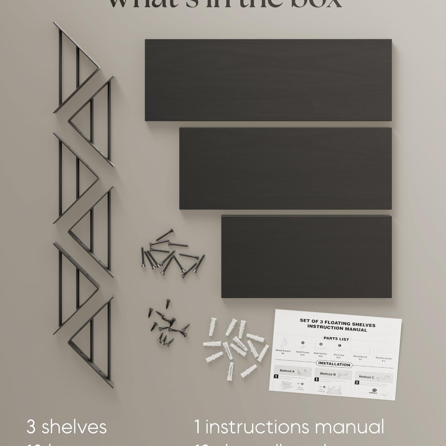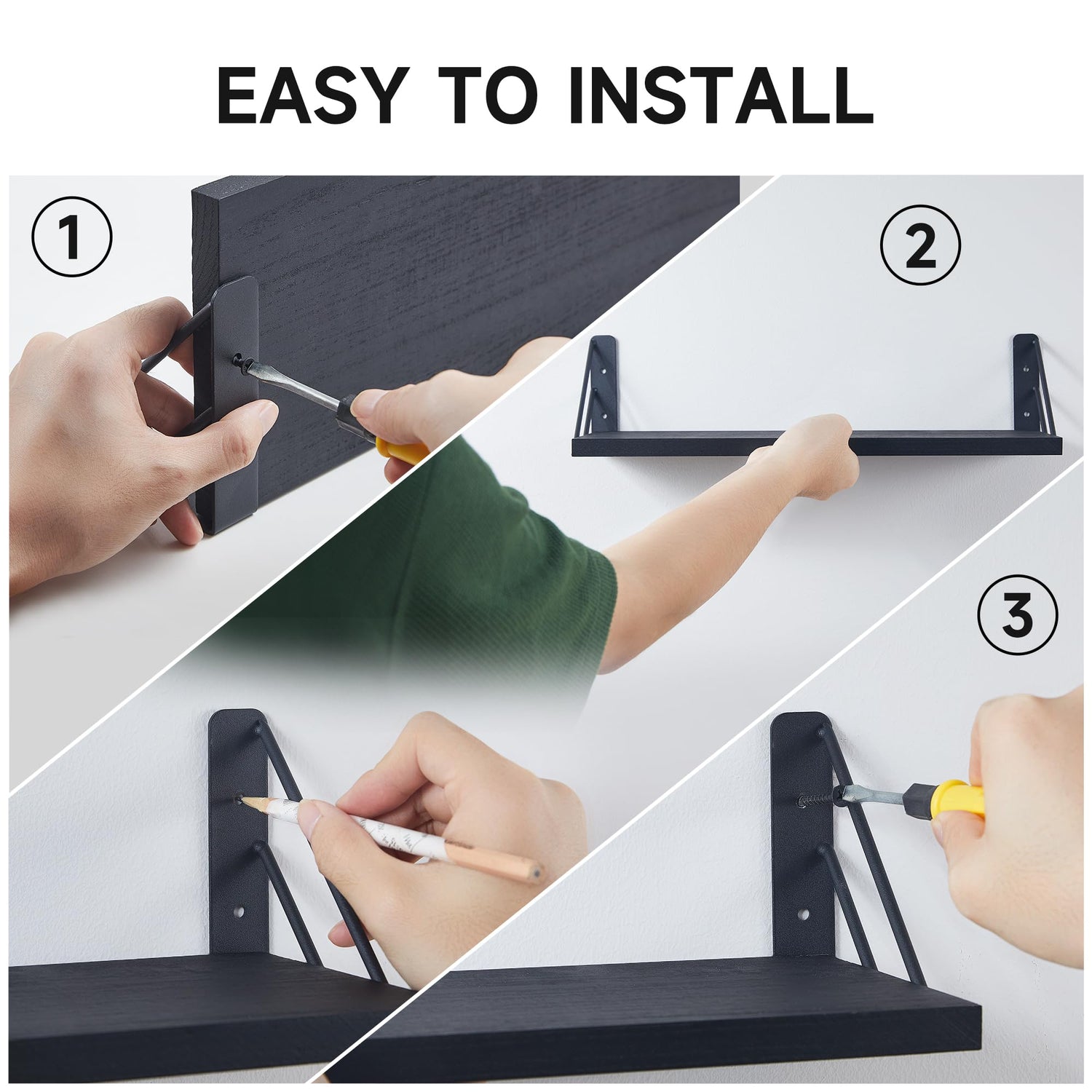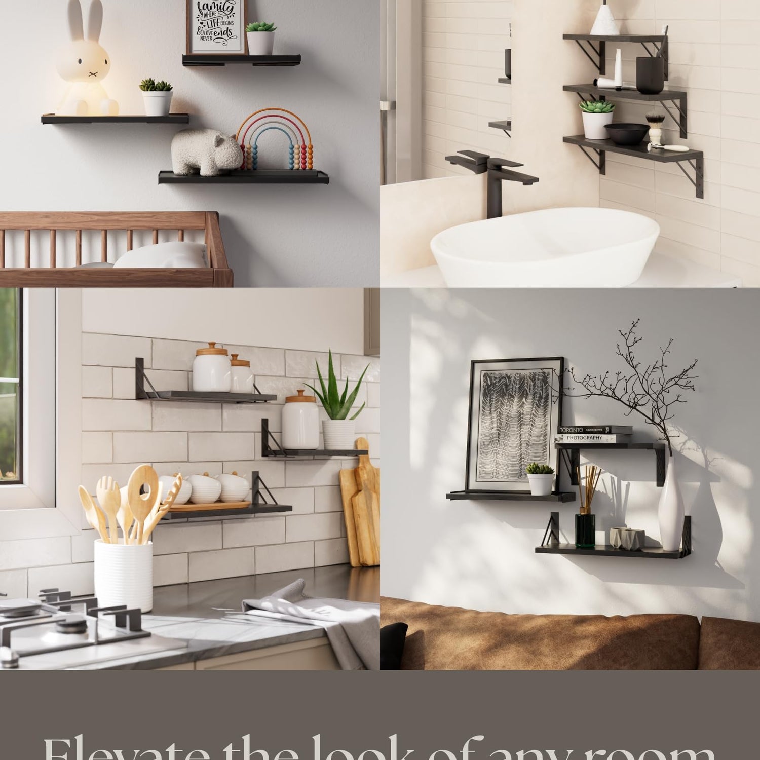 - Organize your space with our wall mounted shelves. These black shelves are perfect for bedrooms, bathrooms, or living rooms. With their sleek design and easy installation, they are ideal for any room, providing both practicality and a stylish touch.
