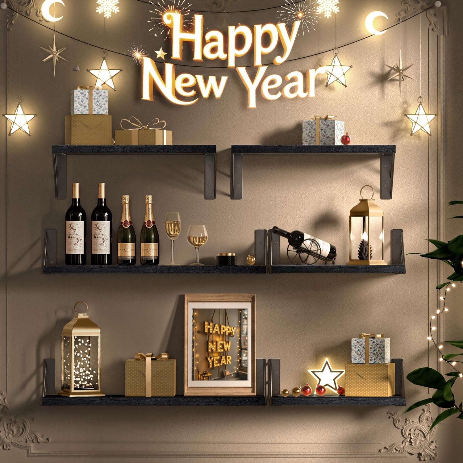 - Create a stylish display with our rustic wall-mounted shelves. Perfect to display decor, these offer ample space for books, decor, and more. The black finish makes them a versatile addition to any room, enhancing your overall decor.