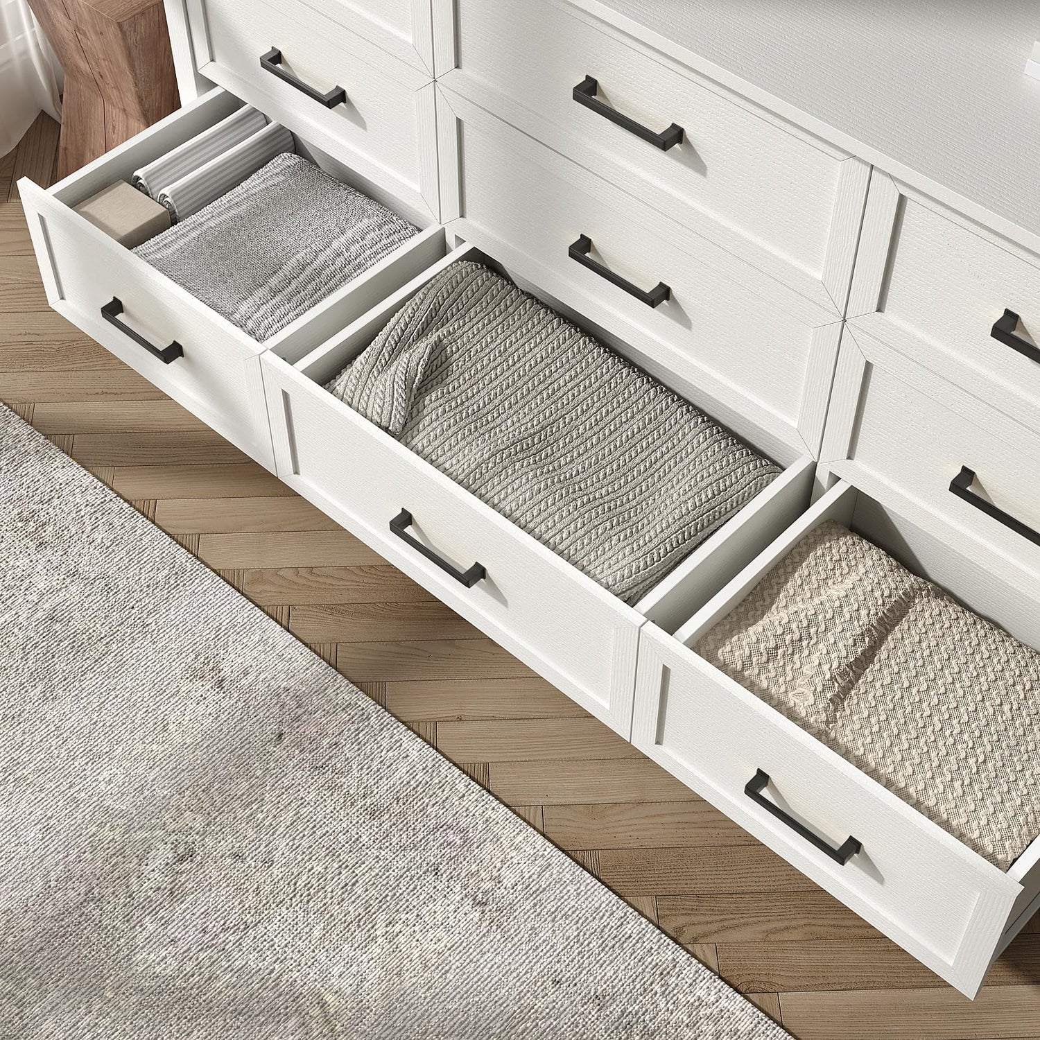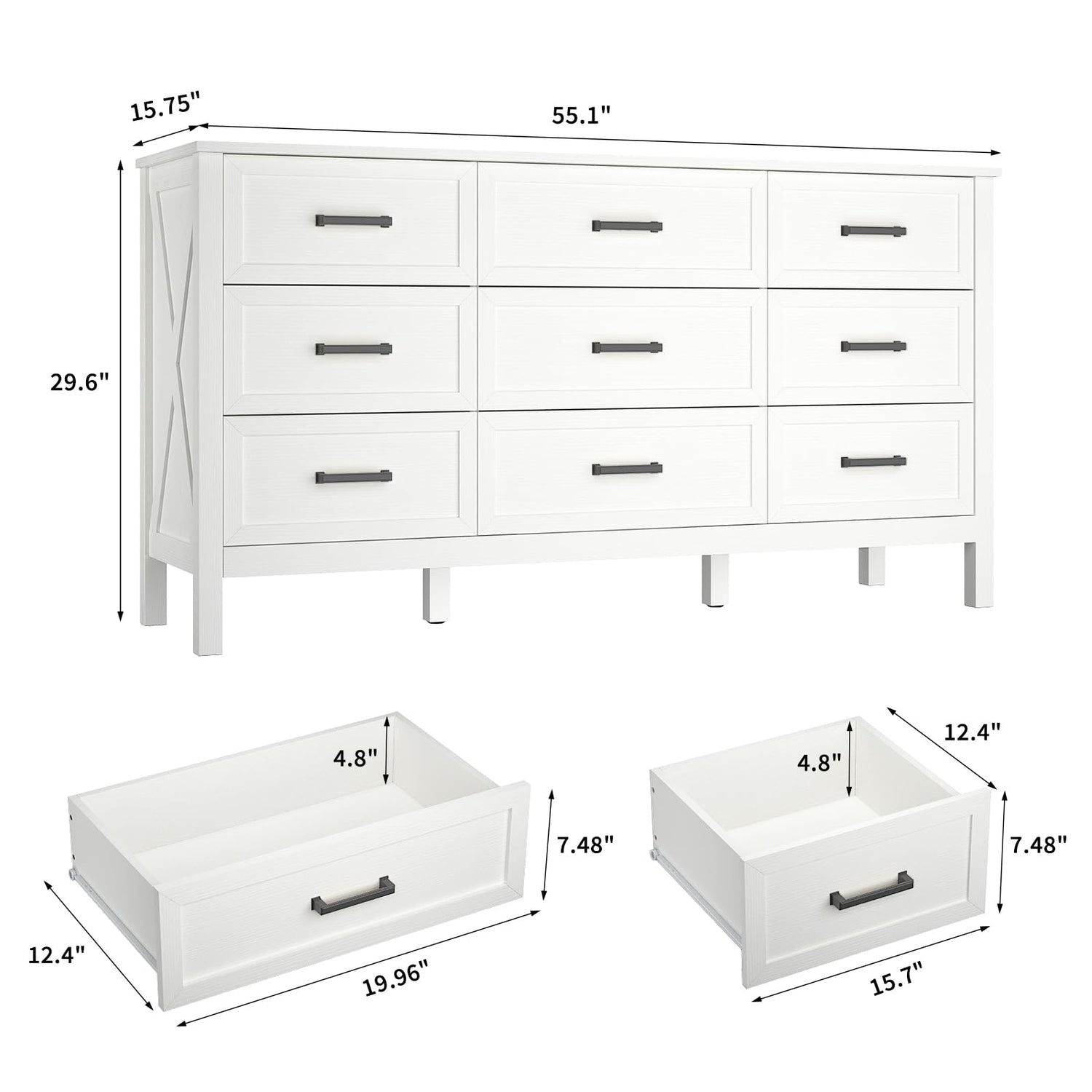 BAZELOR Farmhouse 9 Drawers Dresser for Bedroom, Wood Rustic Wide Chest with Metal Handles, Storage Dressers Organizer for Bedroom, Hallway, Entryway, White