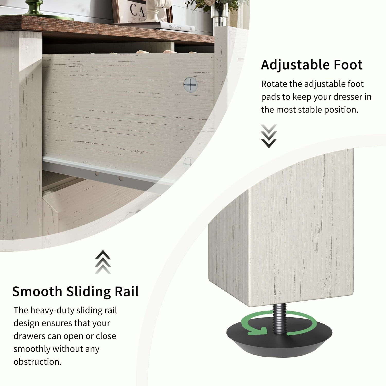 - Solid Structure Dresser: The farmhouse dresser features a stable base and the extra hidden reinforced protection under the base for a long-term use. There are also anti-topping device on the back panel to prevent it from topping over, adding better safety in your home.