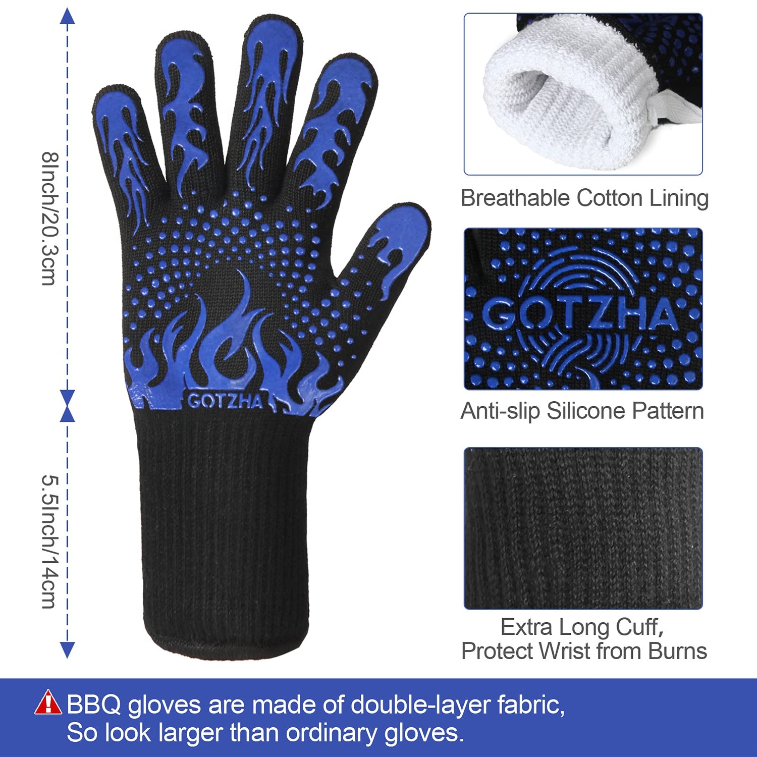- Heat Resistance Up to 1472°F - Have you ever scalded your hand accidentally and had to stop the party? Never hesitate, try to use our GOTZHA BBQ gloves, made of aramid fabric and heat-resistant polyester cotton, just like a fire fighter's fire suit.