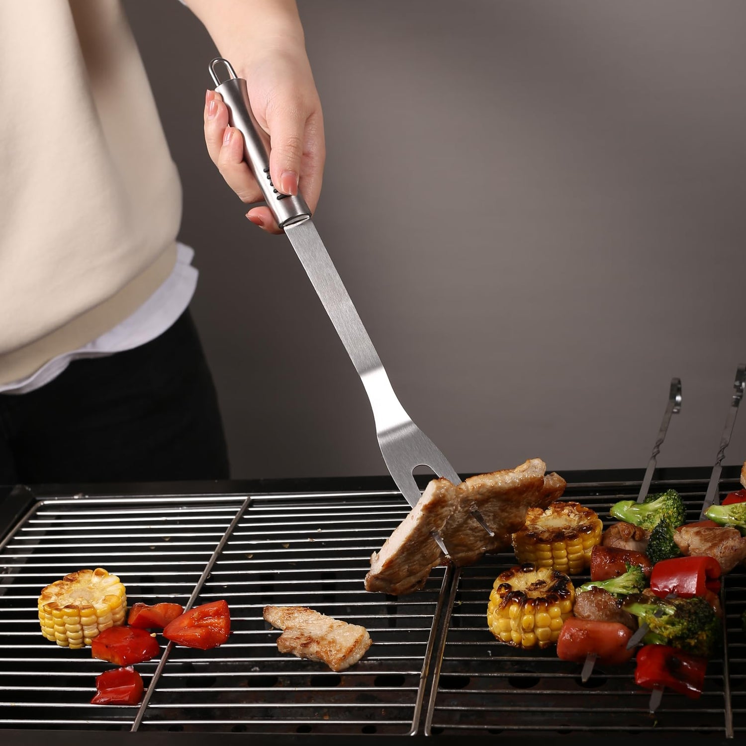 - Anti -sliding Handle Grilling Set:The bbq grill accessories handle made of stainless steel injection molding process;You don't have to worry about the grilling utensils handle slipping during bbq;Grill more faster,easier,cleaner with the Grill Utensil Set