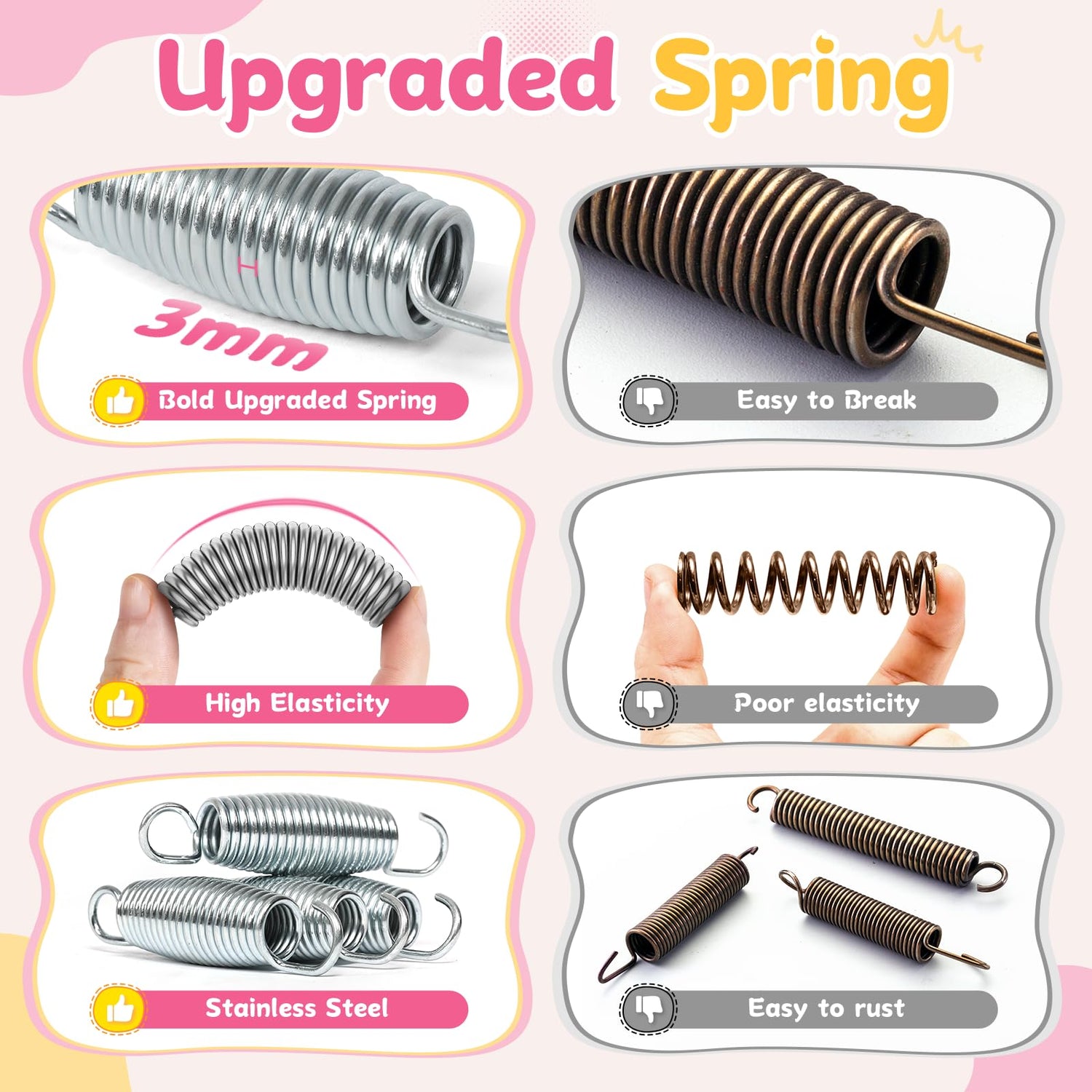 - Thickened Coil Springs: The BACN trampoline for toddlers aged 3-5 boasts 28 extra-thick springs that have undergone testing—over 200,000 times—to ensure a safe and supportive bounce