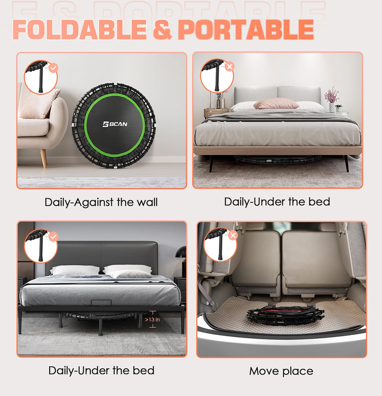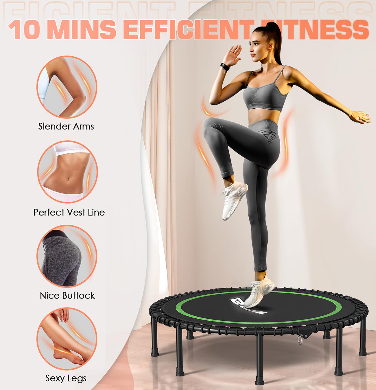 BCAN 48" Adult Fitness Trampoline with Durable Bungees, Stable & Quiet Exercise Rebounder,Great Mini Trampoline for Indoor/Garden Workout - Green