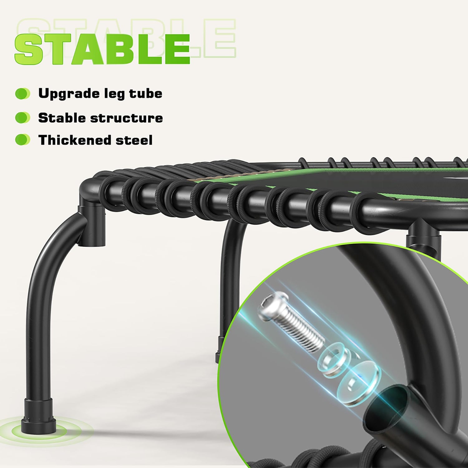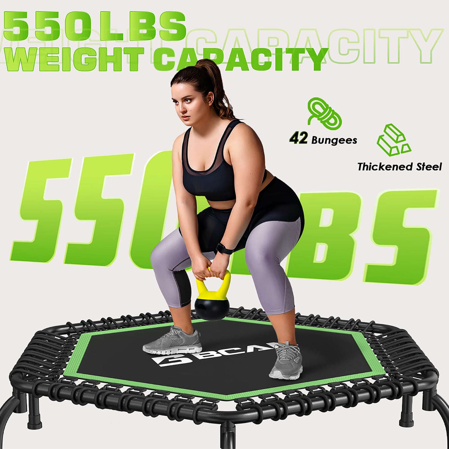 - 550 LBS Weight Capacity: 40 high-strength bungees, 3 mm thickened steel, PP mat make the 2023 upgraded fitness trampoline can bear up to 450 LBS