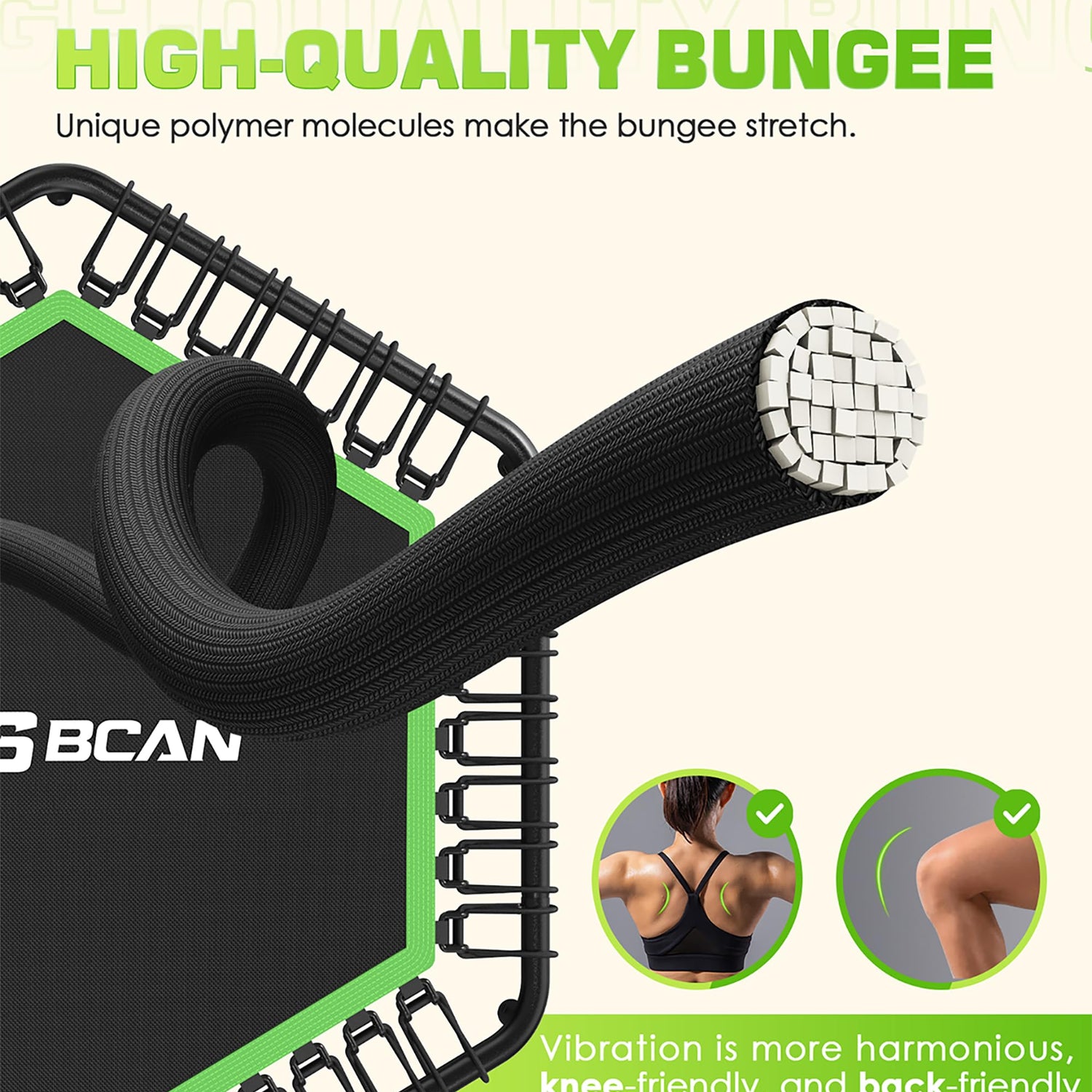 - Premium Bungees: The high-quality bungees provide a smoother and quieter experience without disturbing others, 1.2 mm thickened bungees deliver a comfortable workout experience and caring protection for the knees and back