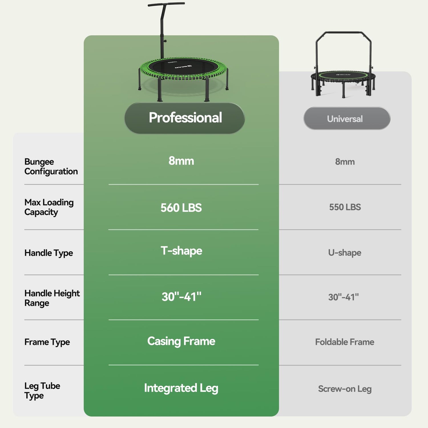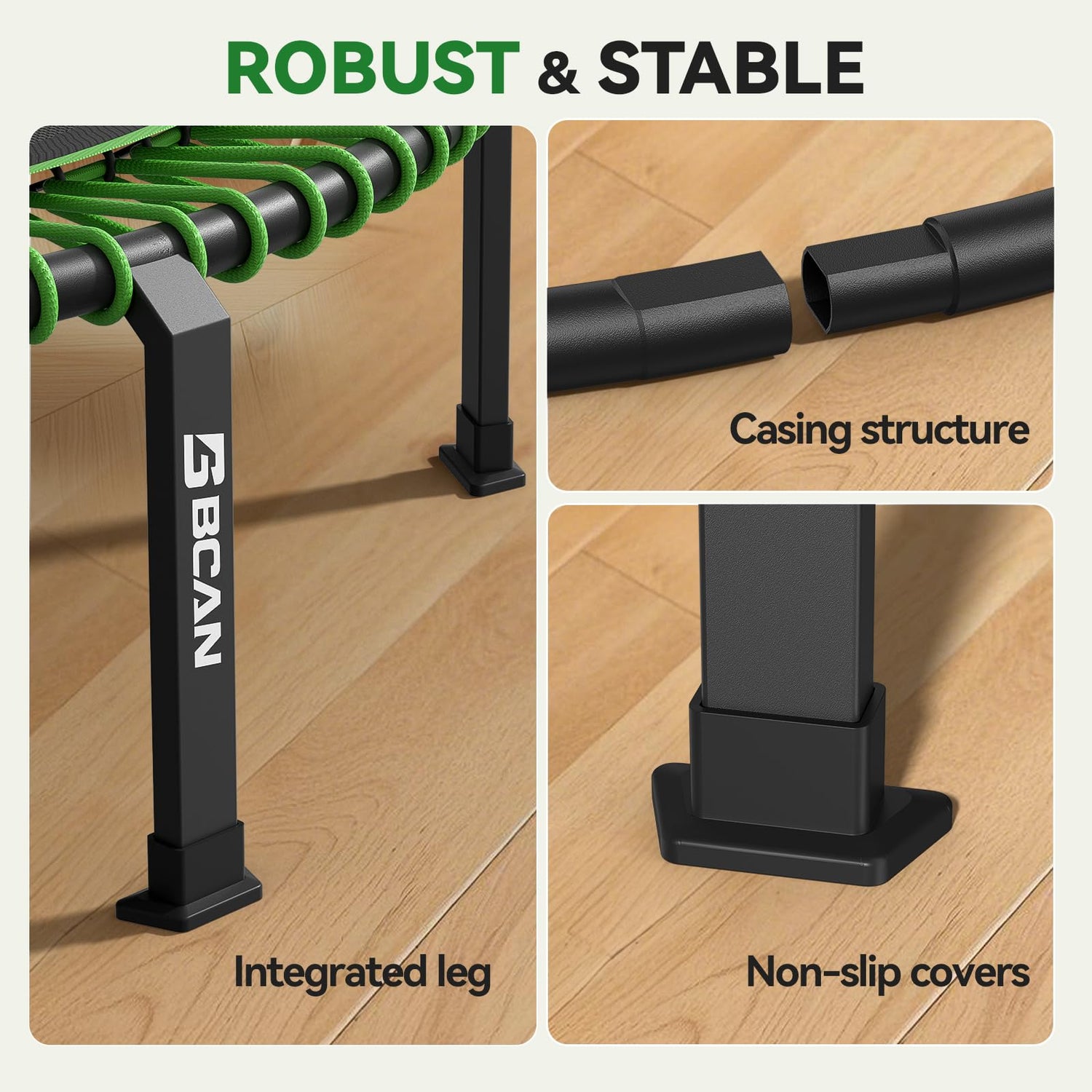 BCAN 560 LBS Soft Land Mini Trampoline, 48" Fitness Trampoline, 1 Sets of Bungees, T Shape Adjustable Foam Handle, Stable, Quiet Exercise Rebounder for Kids Adults Indoor/Garden Workout-48IN-1-GREEN