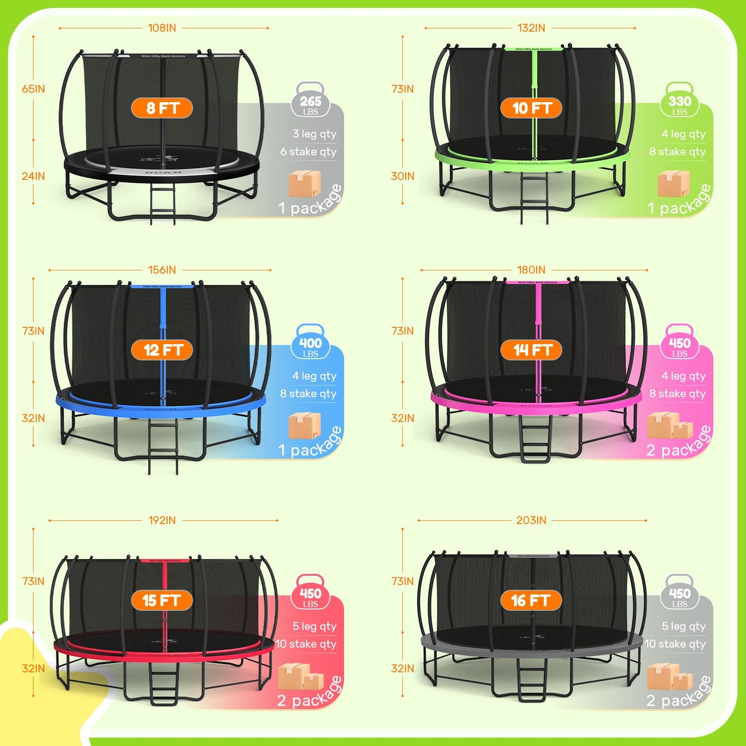BCAN Trampoline 8FT 10FT 12FT 14FT 15FT 16FT Recreational Trampoline with Enclosure for Kids Adults, ASTM Approved, Outdoor Trampoline with Ladder for Kids