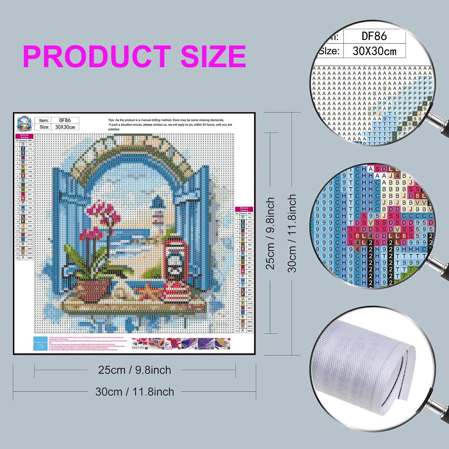 - 【Lighthouse Diamond Art Kits for Adults Included All Need 】Each Beach lighthouse diamond painting kit canvas size is11.8x11.8In (30x30cm). glitter diamonds in this lighthouse diamond art kits are consistent in size and shape.The diamonds color will never fade. Finished beach diamond art more brilliant and vivid. The landscape diamond dot kits include pre-printed canvasx1, diamond dot penx1, 1*red glue clay, trayx1, zipper bagsx10, anti-slip cap for drill penx1 and color coded diamondsxmany,(We have added 30% extra diamonds,so you don't have to worry about not having enough diamonds.)