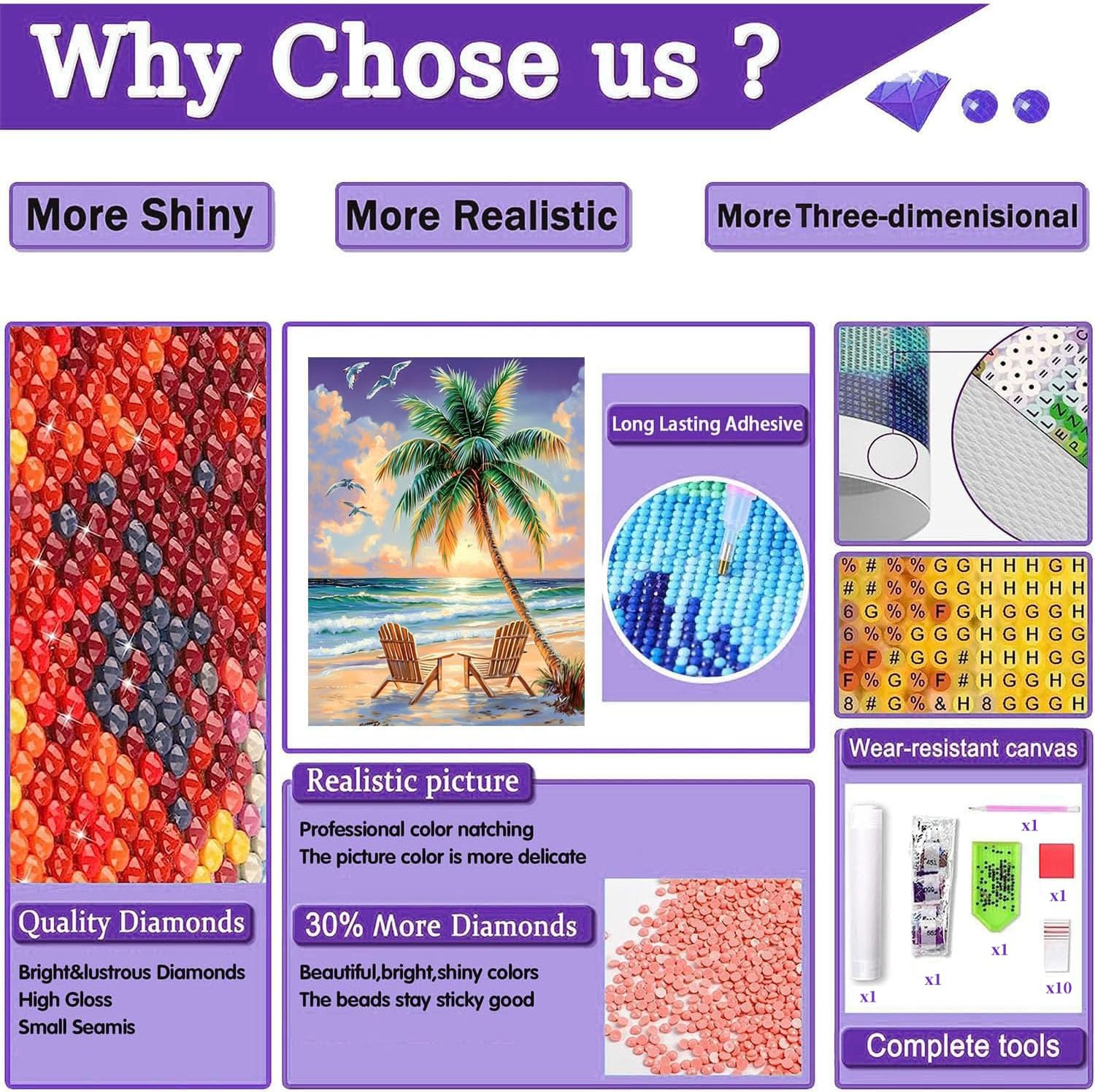 - Quality Diamonds: Diamonds of beach diamond art kits for adults accessories are made by precision machines with uniform shapes and precise colors. We add 30% more diamonds to each diamond painting set to ensure you have enough diamonds to complete your artwork