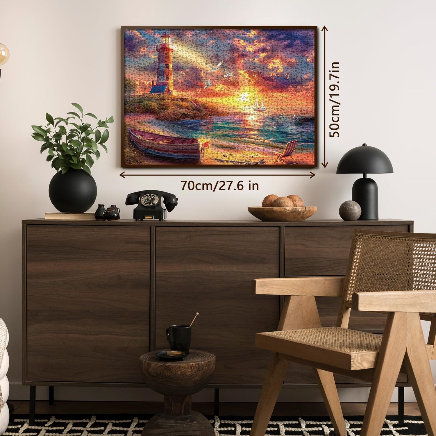 Beach Ocean Lighthouse Puzzle for Adults 1000 Pieces Nature, Summer Sunset Landscape Jigsaw Puzzle, Sailboat Scenery Puzzle