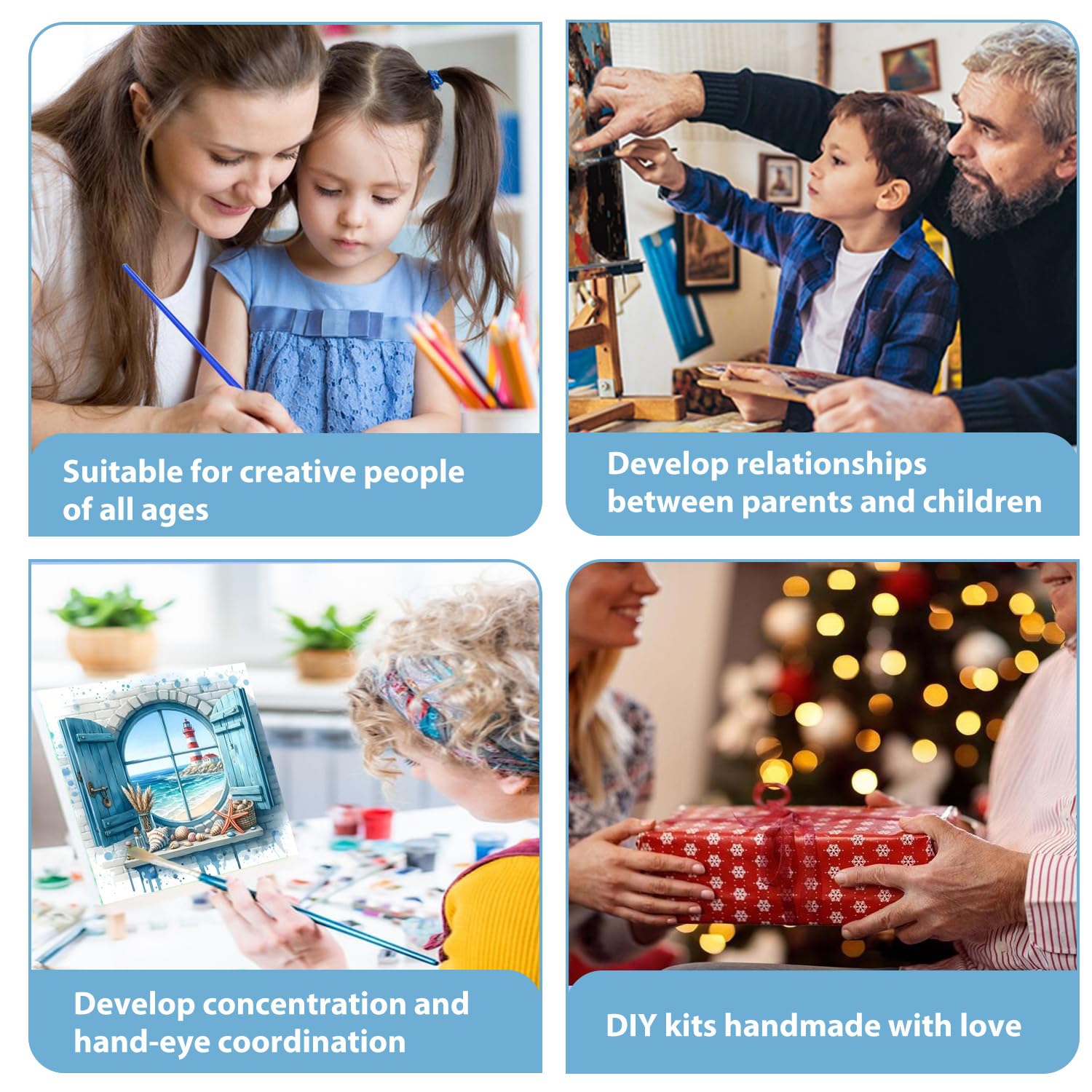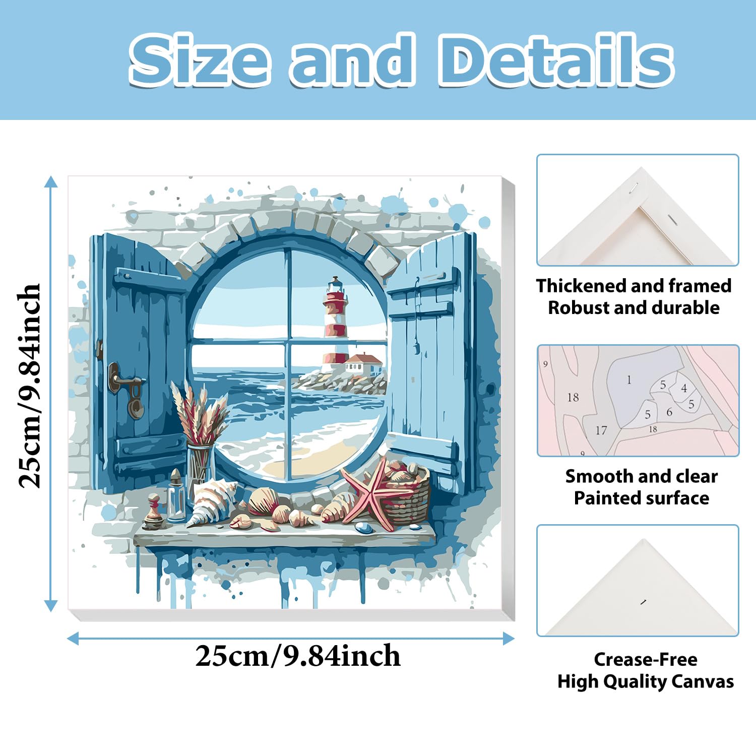 Beach Paint by Numbers Kit for Adults Beginner, Beach Paint by Numbers with Frame and Easel, DIY Crafts Painting by Number for Gift Home Wall Decor 9.84x9.84 inch