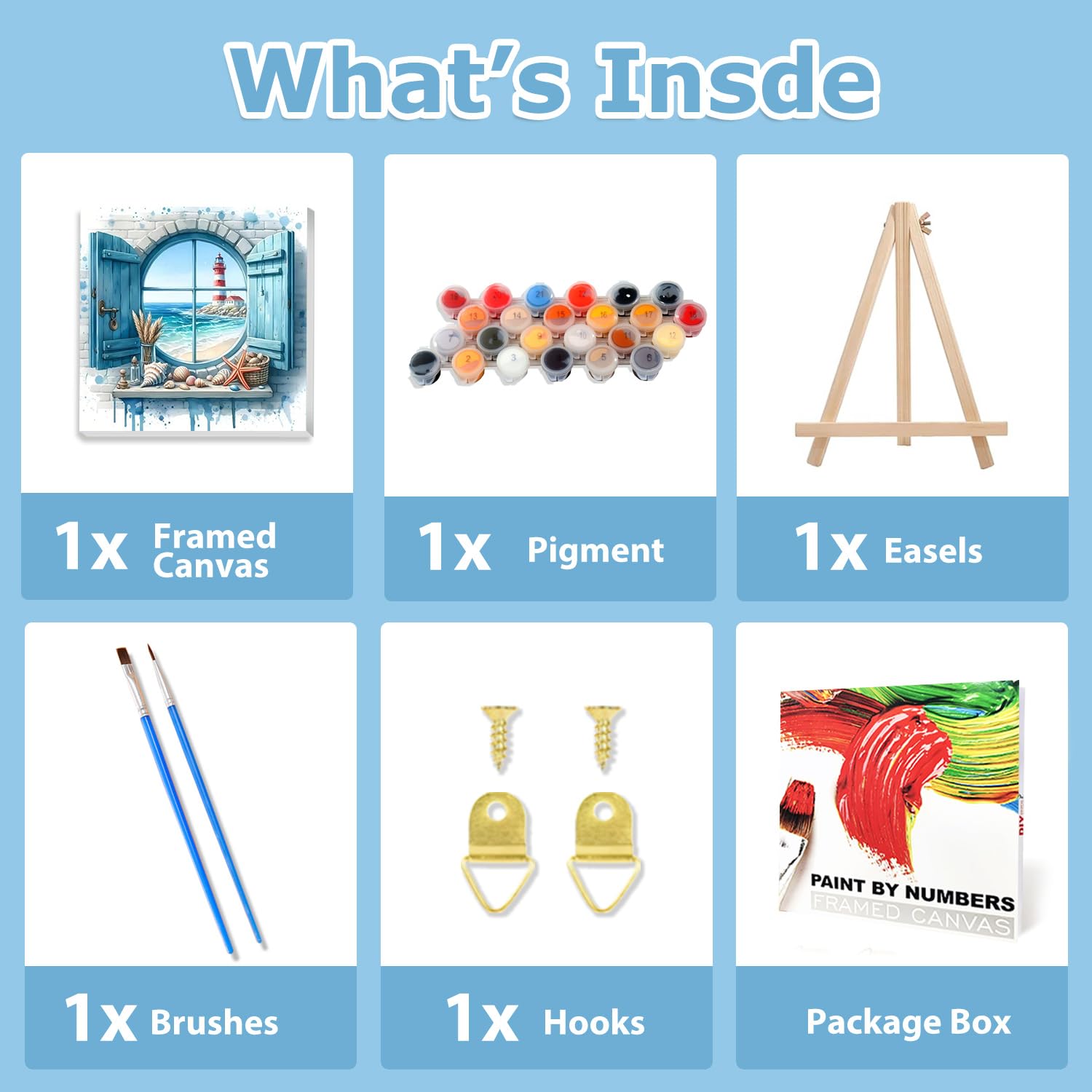 - You Will Get: 1 high-quality soft waterproof canvas(framed), 1easel, 1 matched acrylic paints,1 set of high quality brushes, and 1 reference pictures of finished products
