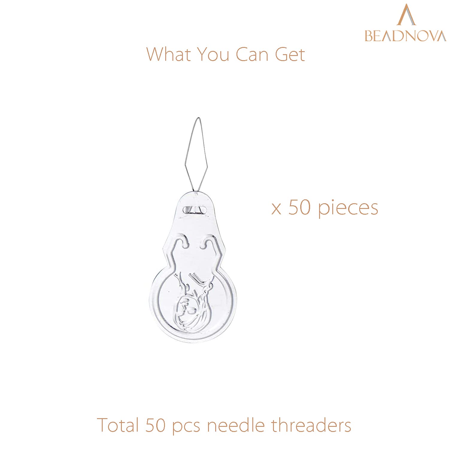 BEADNOVA Embroidery Needle Threader Tool 50pcs Aluminum Sewing Machine Needle Threader for Hand Sewing Cross Stitch Craft Knitting Quilting (50pcs)