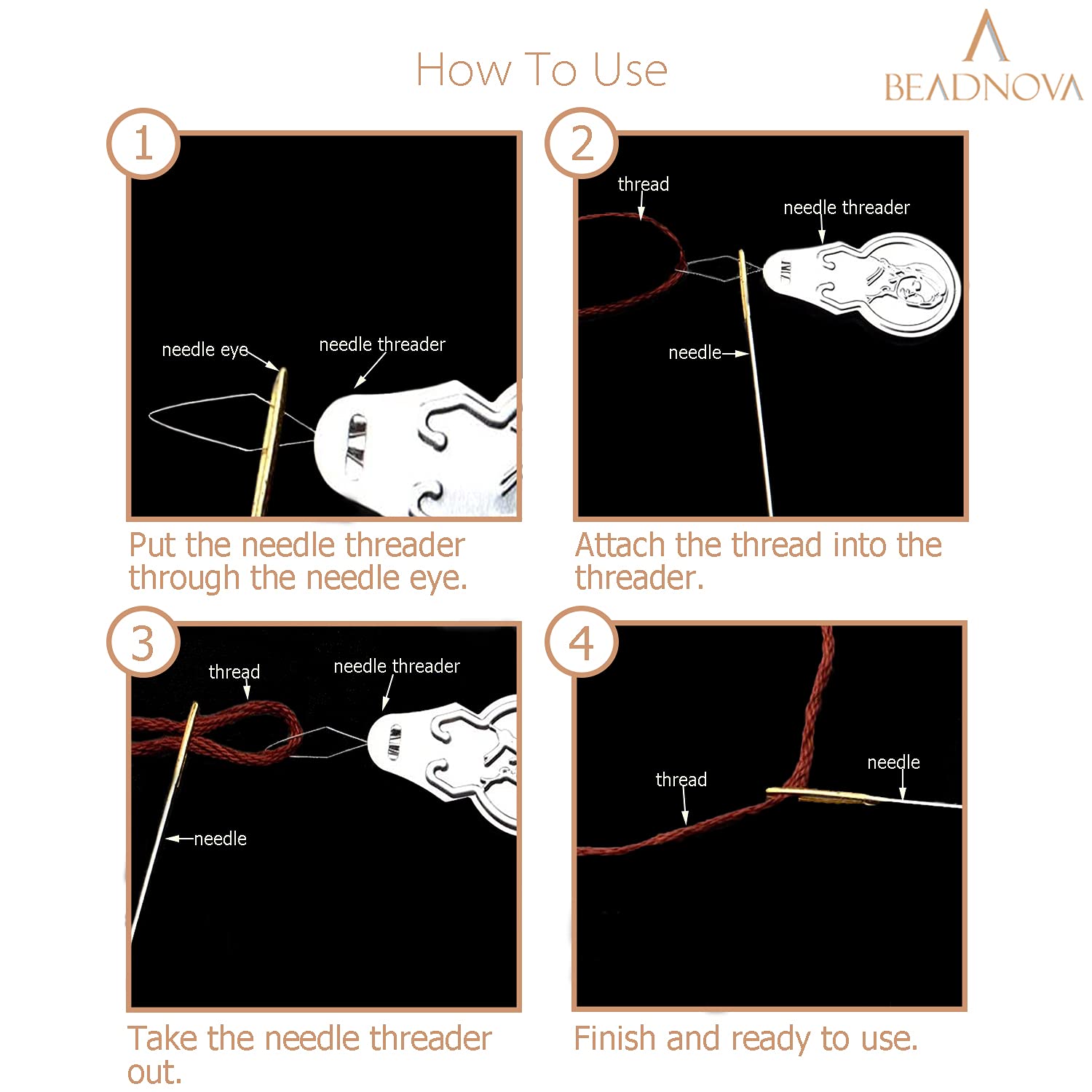 - EASY TO USE: Insert the wire loop on the needle threader through the eye of the needle. Insert the thread tail through the wire loop at least a few inches in length. Fold the tail over and hold both lengths of thread together. Pull the wire loop out from the eye of the needle and ensure the thread tails comes through with it.