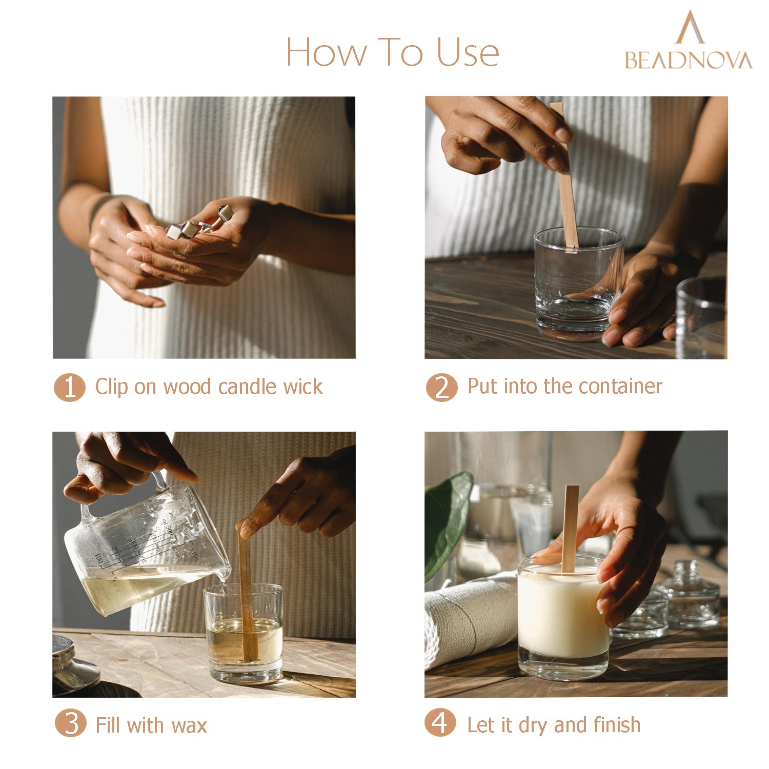 Details: BEADNOVA Wood Candle Wick Clips 50pcs Wood Candle Wick Base Sustainer Tabs for Candle Making and Candle DIY (16mm/ 0.6 inch)