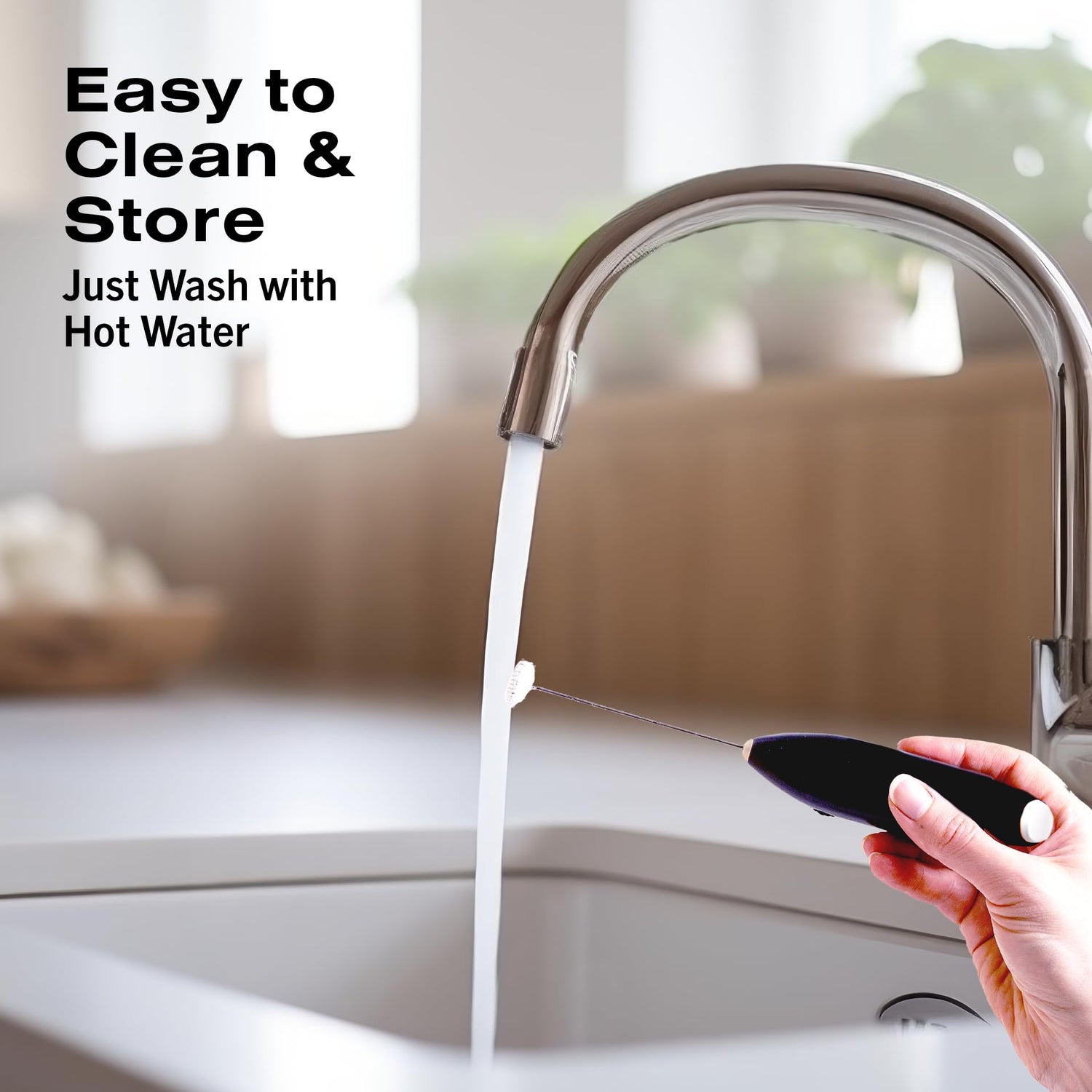 - BARISTA STYLE - Transport yourself to your favorite café every morning with this mini frother. Enjoy creating a rich, creamy foam for your hot and cold drinks, just like a professional barista.