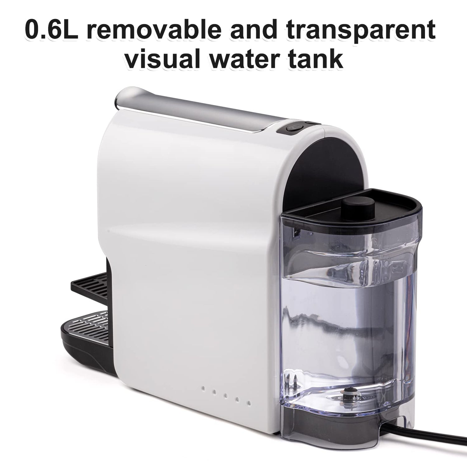 - 【More Efficient Cleaning】The water tank, drip tray and used pods container of the single serve espresso machine are all removable for more efficient cleaning. The water tank capacity is about 22 oz and the used pods container can holds 9-11 pcs.