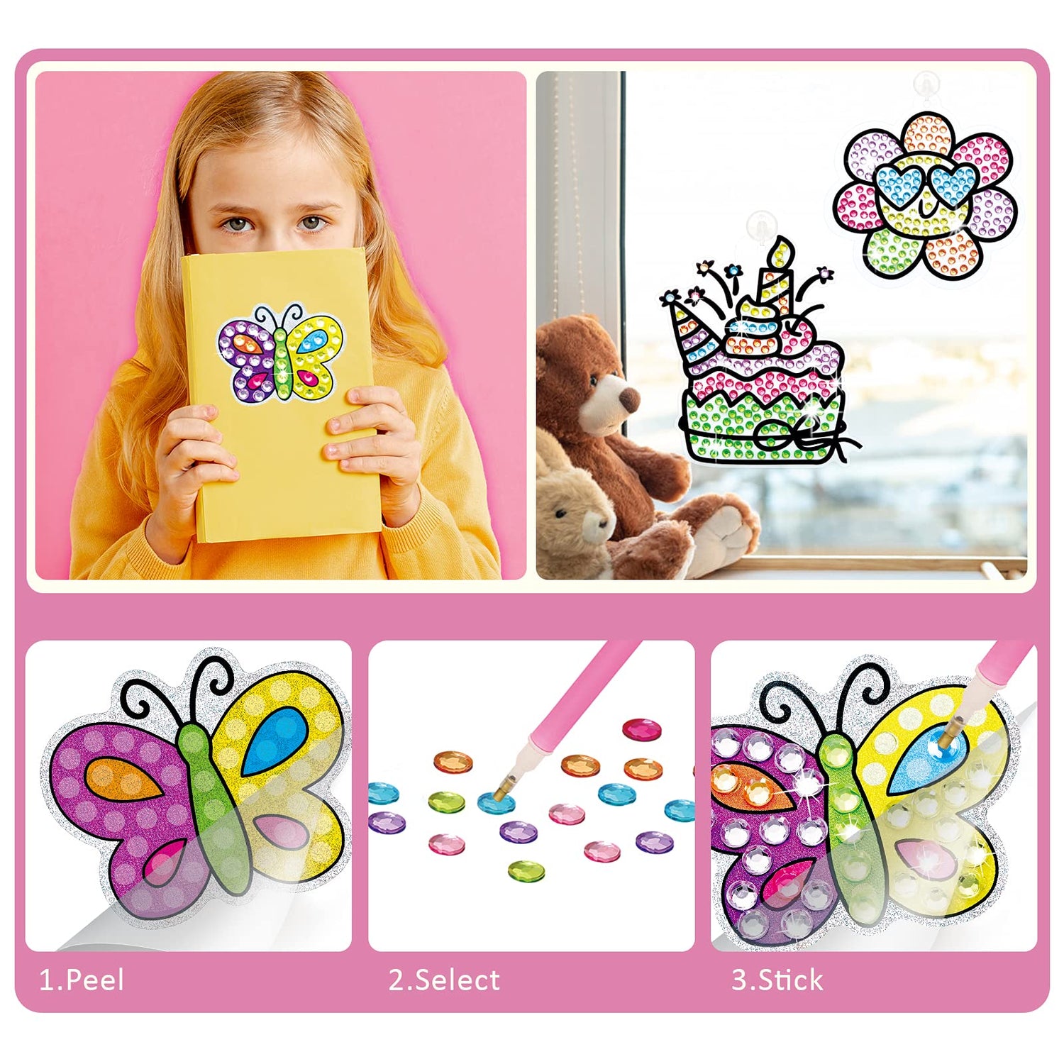 BEARUN Gem Art, Kids Diamond Painting Kit-Big 5D Gem, Arts and Crafts for Girls Ages 6-12, Create Your Own Magical Stickers and Suncatchers - Diamond Art Gift for Girls Ages 6, 7, 8, 9, 10-12, 6-8