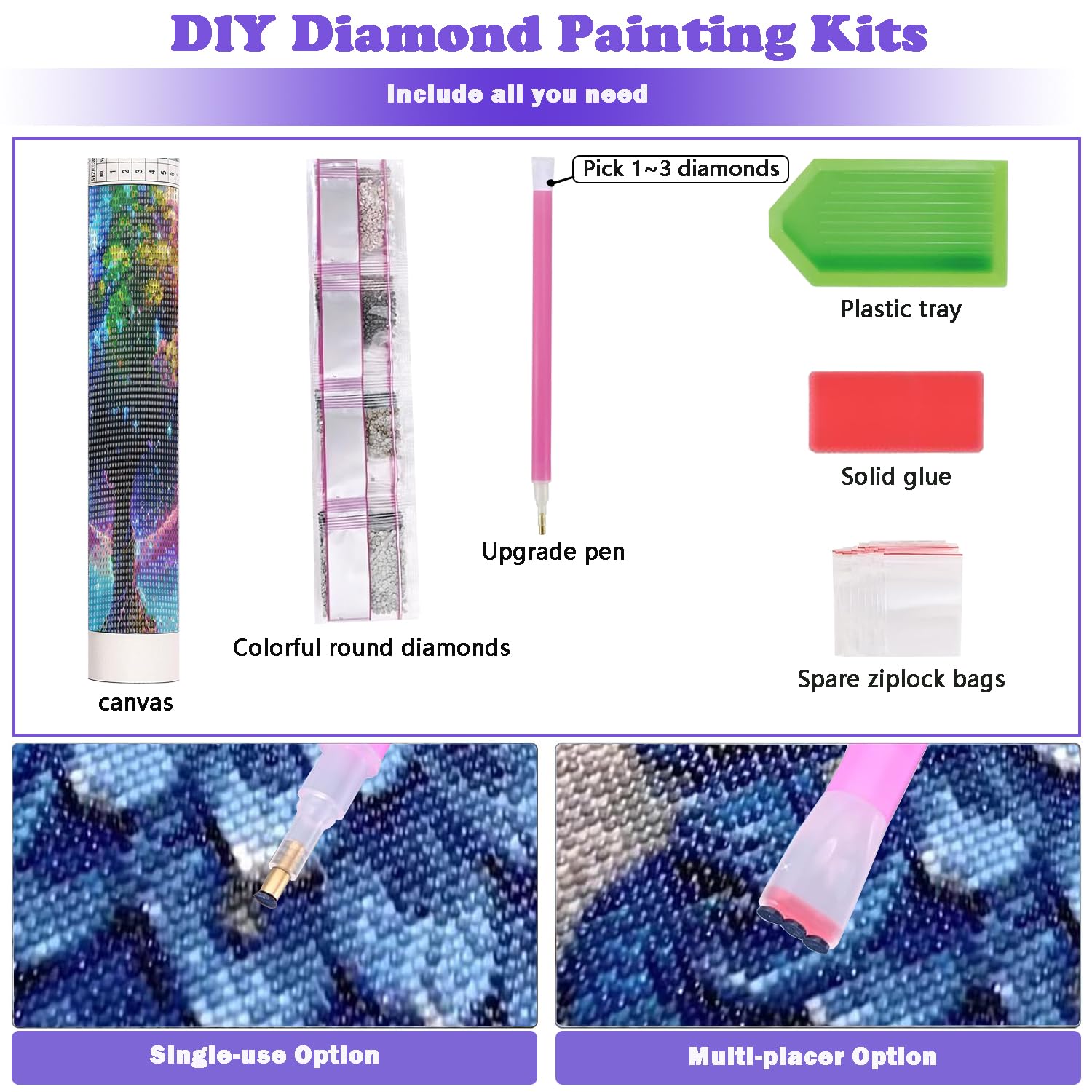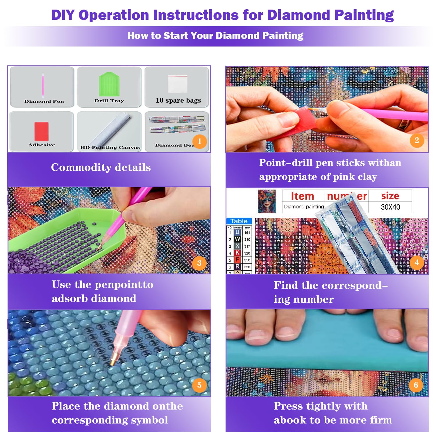- Product Package Contents: Our diamond painting for adults includes a carefully curated set of items to ensure a seamless crafting experience. Specifically, the package contains 1*HD print canvas,1*diamond pen, 1*wax, 1*tray, 10*spare bags and sufficient number of round diamonds.