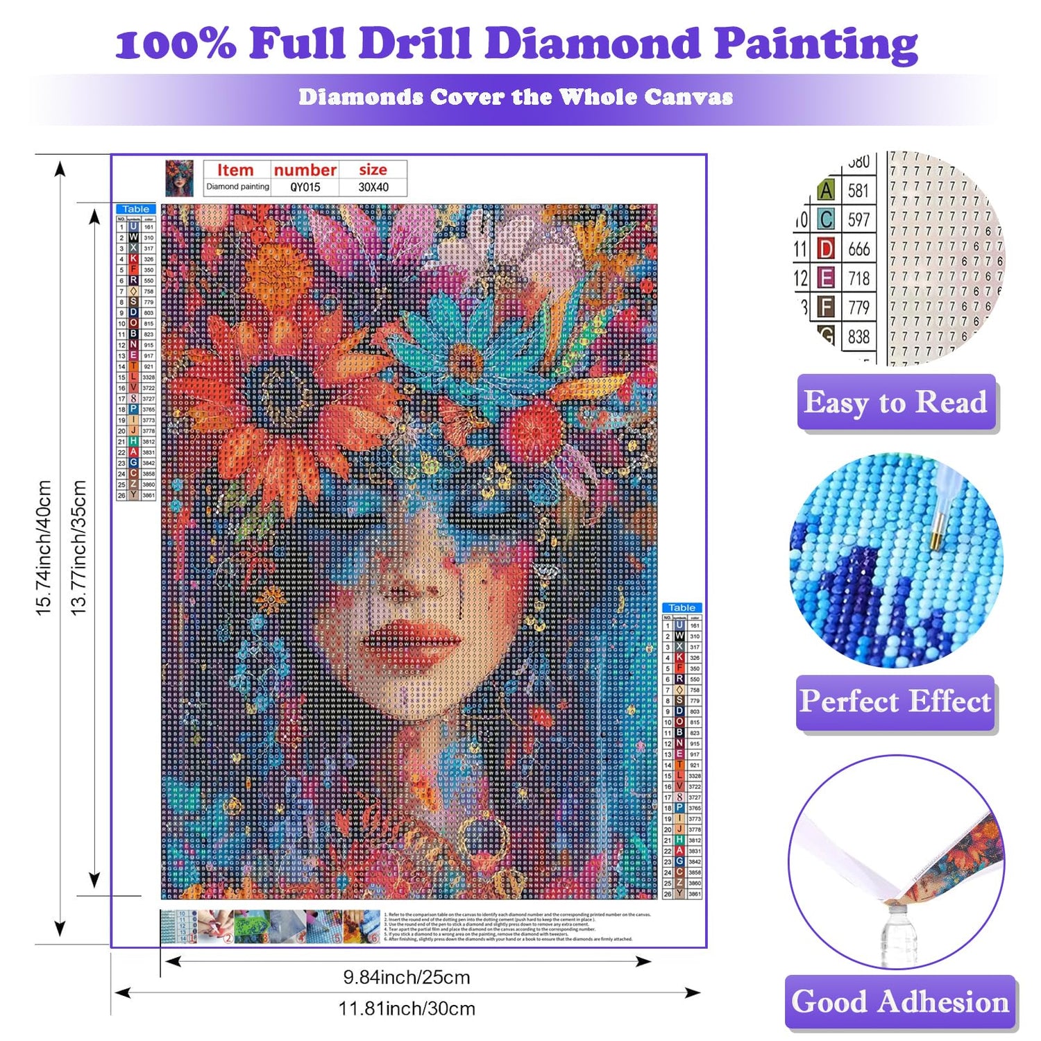 Beautiful Woman Diamond Art Kits for Adults, Flower Diamond Painting Kits, Dimond Art Paintings Kit, 5D Diamond Dot, Small Gem Painting Kit, Crystal Art Beginner, Home Wall Decor Gifts (12x16inch)