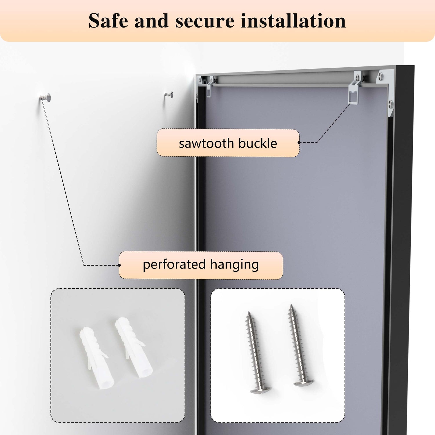 - 【Two installation methods】The back of the bathroom mirror is equipped with a wall mounted bracket, which is sturdy enough to support the weight of the mirror. First fix the screws on the wall, then hang the mirror. You can choose horizontal/vertical suspension according to your preferences or space.