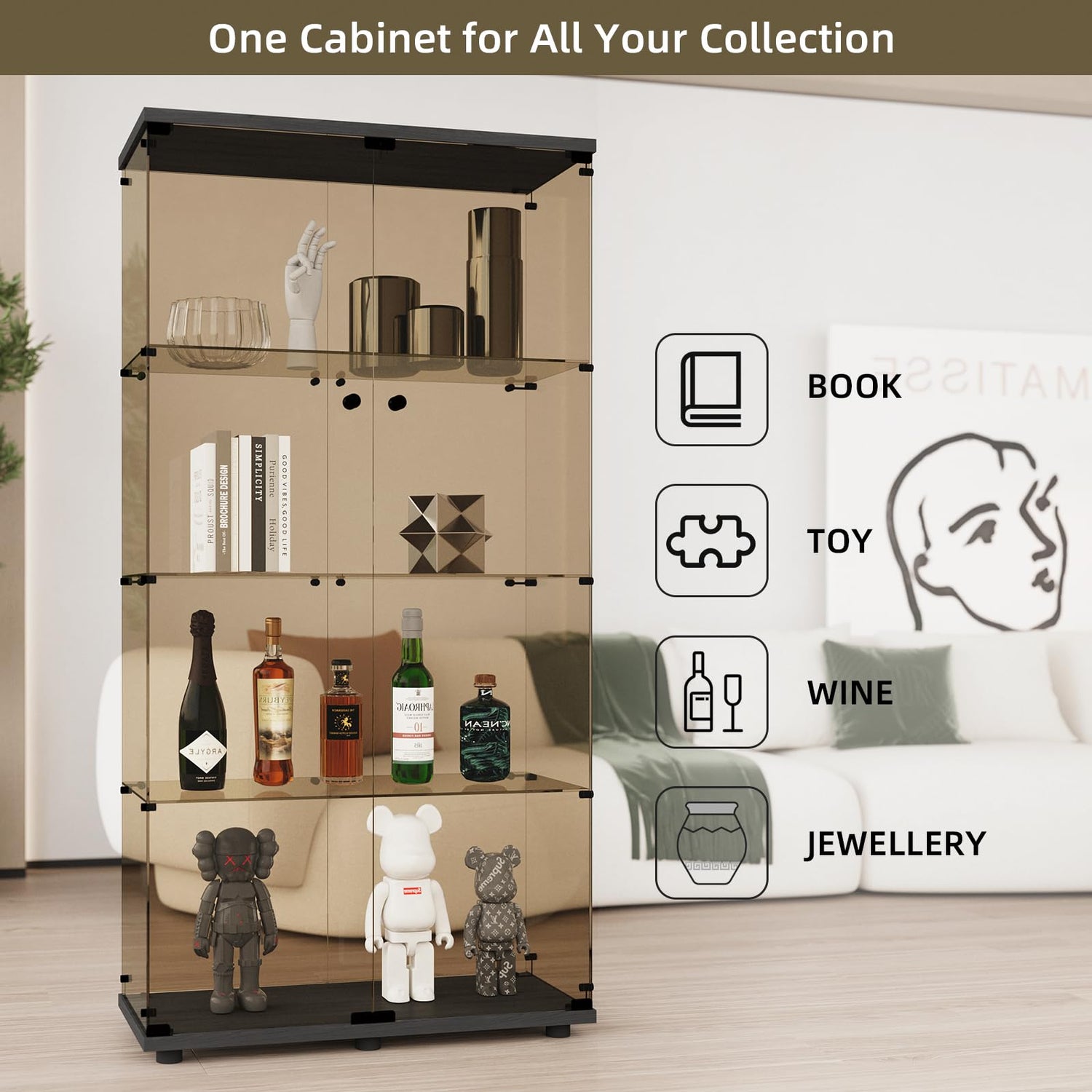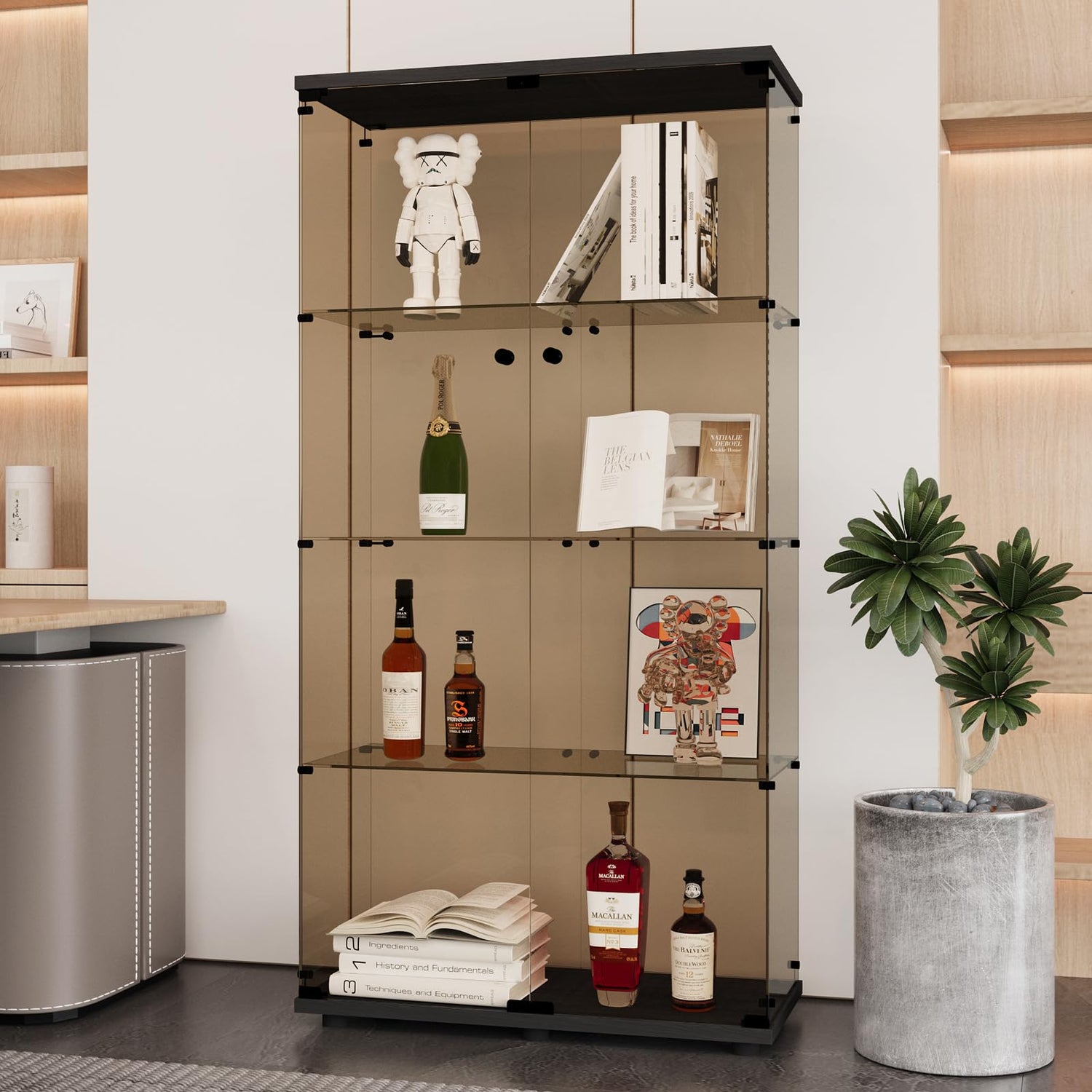 Beauty4U Glass Display Cabinet with 4 Shelves, 2 Doors Curio Cabinets for Living Room, Bedroom, Office, 5mm Brown Tempered Glass Floor Standing Bookshelf, Quick Installation