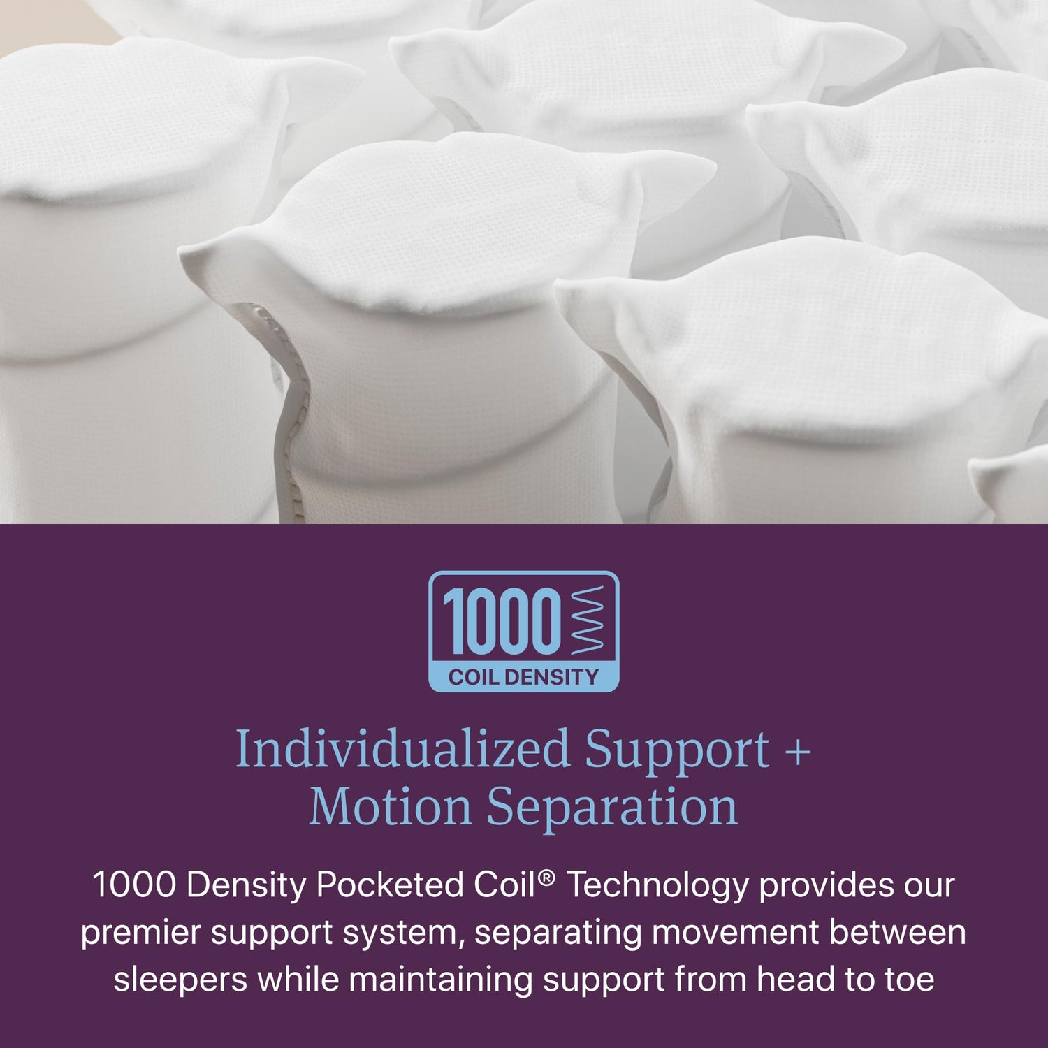 - Support: Our 1000-density Pocketed Coil Technology and higher density foams provide premier individualized support and motion separation for an undisturbed rest