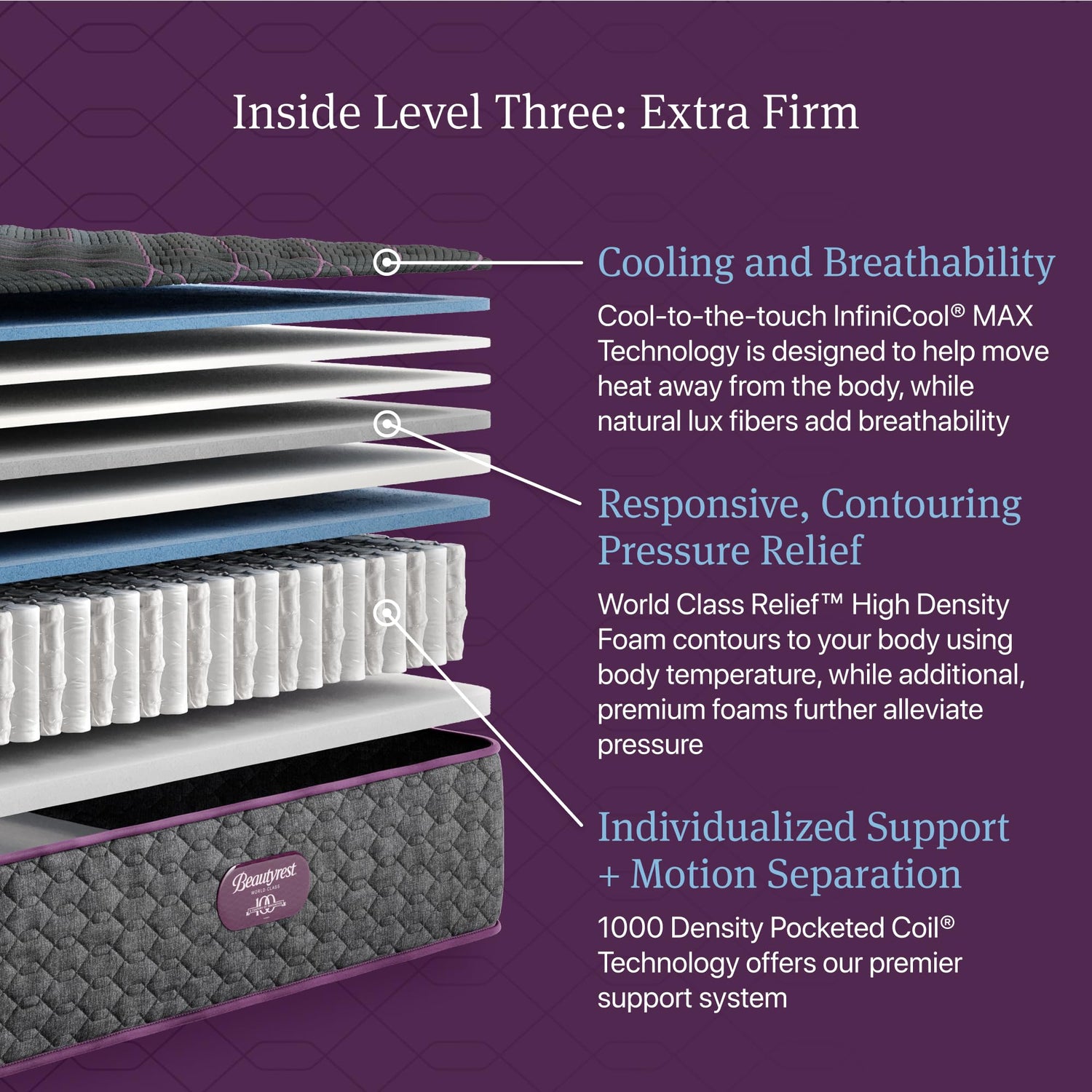 Beautyrest World Class Level Three Extra Firm 14.25" Mattress - King Size - Durable Support, Pressure Relief, Cooling, Motion Separation; CertiPUR-US, 100 Night Sleep Trial and 10 Year Warranty