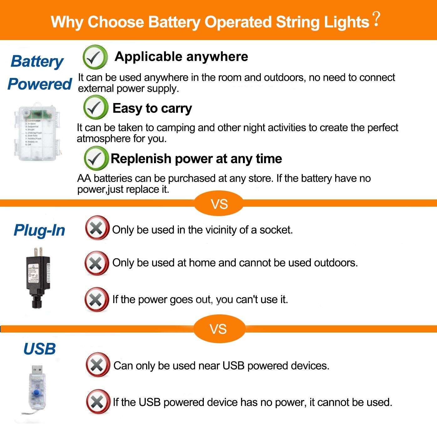 - ☔Waterproof Outdoor Lights:The waterproof LED string part can be soaked in water, and the battery case of IP44 can withstand splashing water, it can be used normally even in rainy days.