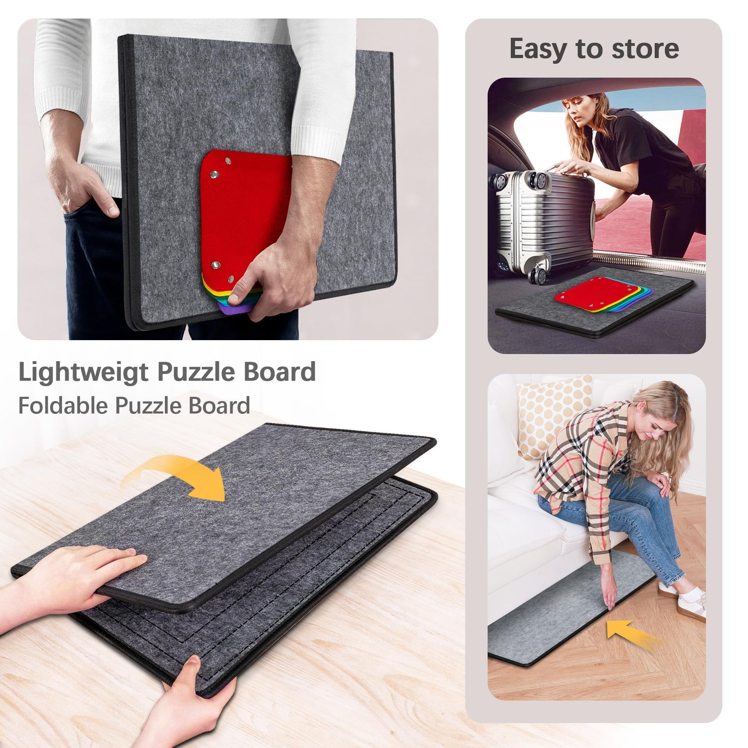 - Foldaway Design & Felt Cover - This puzzle board meets the needs of using and storing jigsaw puzzle games. Can be folded up while not in use for space-saving storage, or easy transport when you go out. High quality gray felt cover is dust resistant and easy to clean, as well as prevent your puzzles from getting lost and prevent them from being messed with by naughty pets.