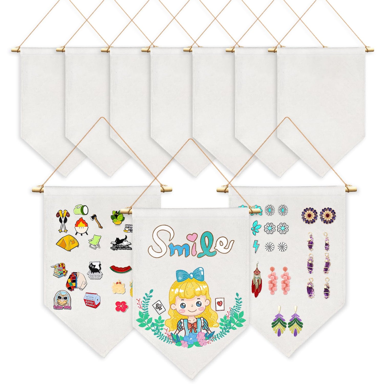 Beclumas 10 Pack Sublimation Blanks Pin Display Banner Enamel Pin Wall Display Banner Pin Display Pennant Wall Hanging Brooch Jewelry Storage Case Blank Hanging Flag Banner for Room Decor