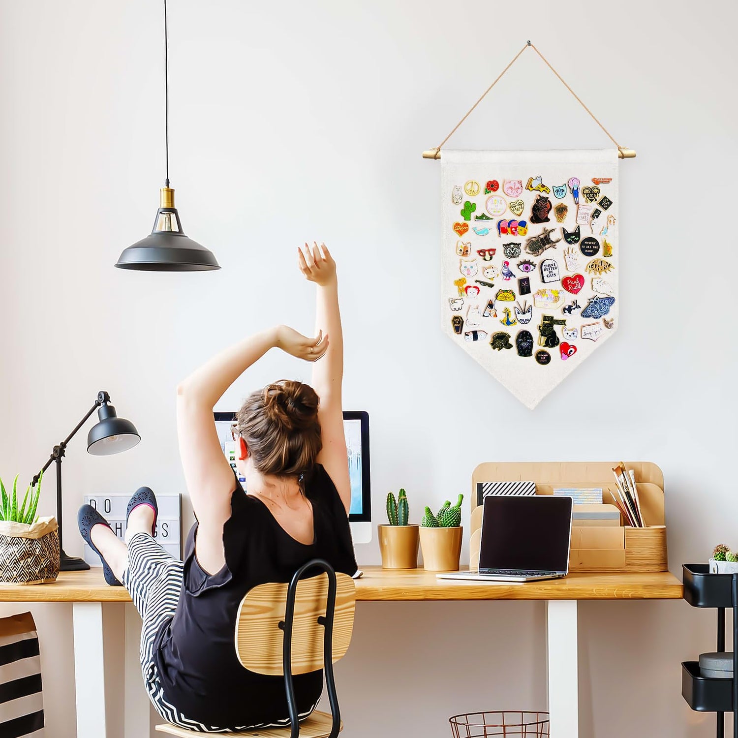 - Widely Used: This hanging brooch pin organizer is fashionable and classic design, you can use it collections your any personal accessories, such as: you can store brooches, jewelry, earrings, enamel pins, badges, etc, to form a unique hanging decorative display, or you can hang it on the wall, closet, door as a decoration to make your home space warmer and more comfortable