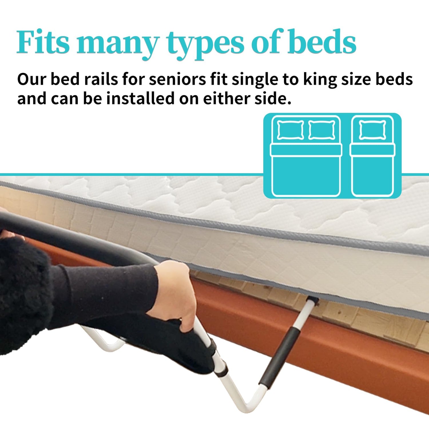 - HEIGHT ADJUSTABLE: The AOHHL Bed Assist Rails are height adjustable from 16 to 21 inches and extend 36.6 inches in bottom length for a great security and fit. Best choice for people with reduced mobility and seniors, single, king, double, queen and king are all available, the queen can fit one on each side